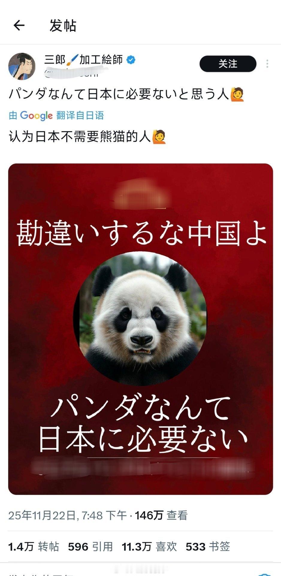 日本人在说不需要中国大熊猫呢。反正日本人现在就非常喜欢搁网上发这种“认为日本不需要大熊猫的举手。”“认为日本不需要中国大米的举手,”“认为日本不需要中国游客的举手,”好像觉得自己靠举手的人多就能赢了什么似的。