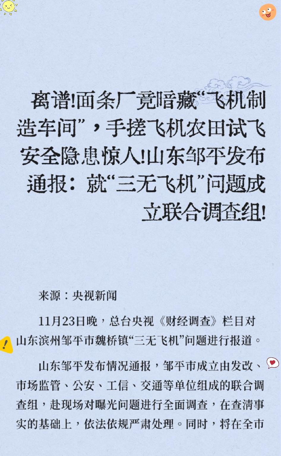 刷到央视报道直接惊掉下巴! 一个卖面条的厂子居然跨界造飞机, 还是手搓出来的商业售卖机——没喷漆的外壳锈迹斑斑,连关键部位的螺丝都带着锈,这哪是造飞机,简直是拿人命当儿戏! 飞机可是高空飞行的交通工具,每一个零件、每一道工序都容不得半点马虎,没有合规资质、没有安全检测,这不就是妥妥的“三无产品”? 真不敢想谁敢买这种飞机上天,一旦出问题就是机毁人亡的惨剧。 现在很多商家为了赚快钱,完全抛弃了底线,觉得跨界就能投机取巧,却忘了安全永远是第一位的。 当地已经成立调查组,希望能严查到底,给公众一个交代。 底线失守的跨界根本不是创新,而是对生命的漠视! 你觉得这种“面条厂造飞机”的操作离谱吗? 如果遇到这种明显不合规的产品,你会第一时间举报吗?