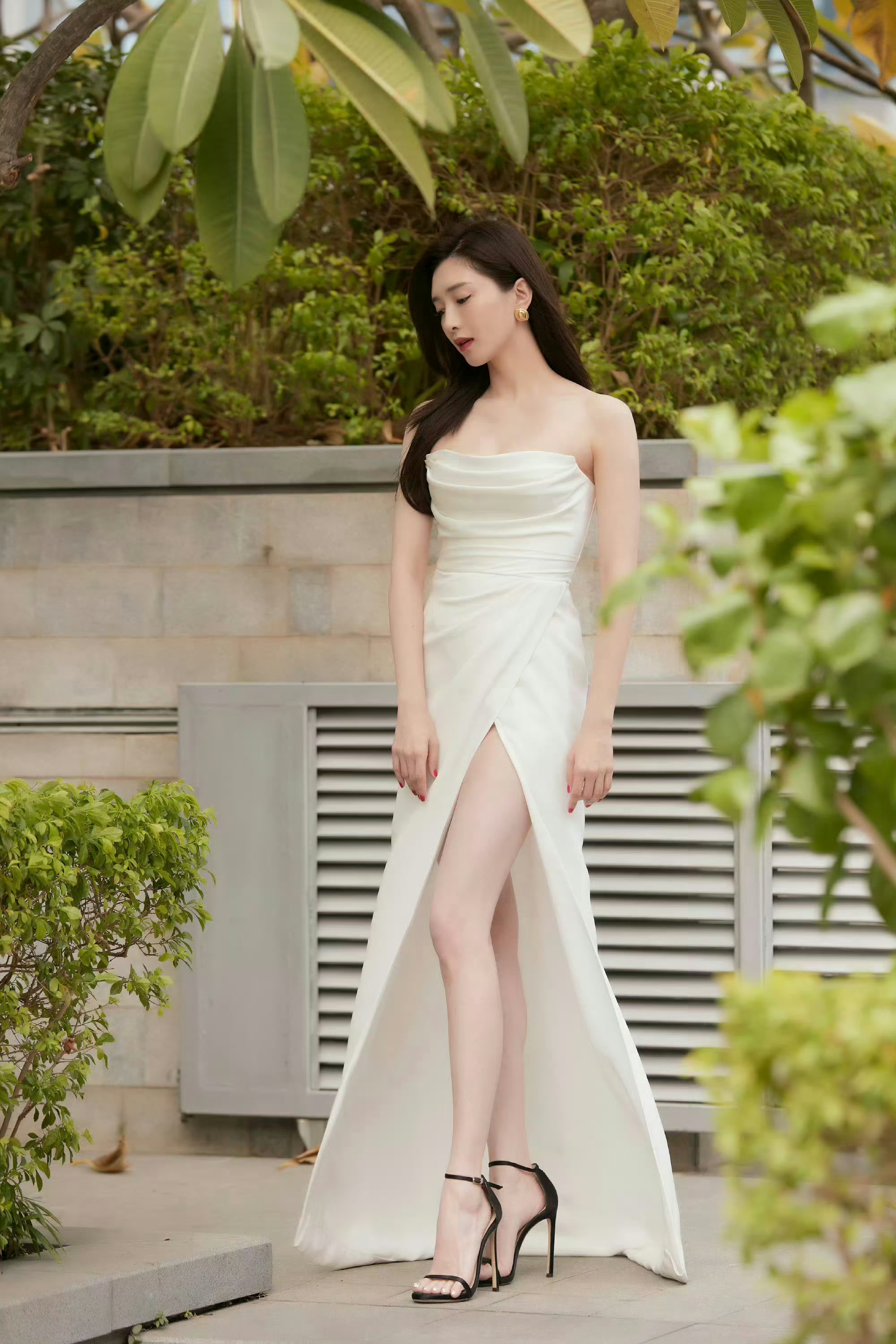江疏影这组白裙路透直接美到失语!缎面抹胸裙配开叉设计,又优雅又有氛围感,长发衬得气质清冷又明艳,这状态是把“贵气美女”焊在身上了吧~