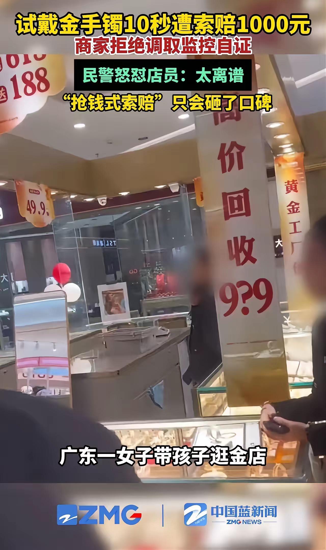 活久见!试戴金镯10秒就要赔1000块?这商家怕不是想钱想疯了! 我刷到这事儿直接气笑了!李女士带娃买金镯,店员热情催着试戴,结果刚套上发现尺寸大,10秒不到取下来要走,店员立马变脸,举着手镯说变形了,拦着门口不让走,非讹1000块! 关键这手镯本就偏大,试戴时都没贴到孩子皮肤,哪来的变形?李女士没办法报了警,民警一看就火了,当场怒怼店员太离谱,还指出商家不调监控、限制人身自由涉嫌违法! 真是开眼了,试戴本就是消费者的权利,黄金软不会提前说?张口就讹钱,这哪是做生意,分明是抢钱!生意的根儿是信任,这么折腾,以后谁还敢进店? 10秒试戴金镯索赔1000元 民警怒怼商家讹人 消费者权益保护
