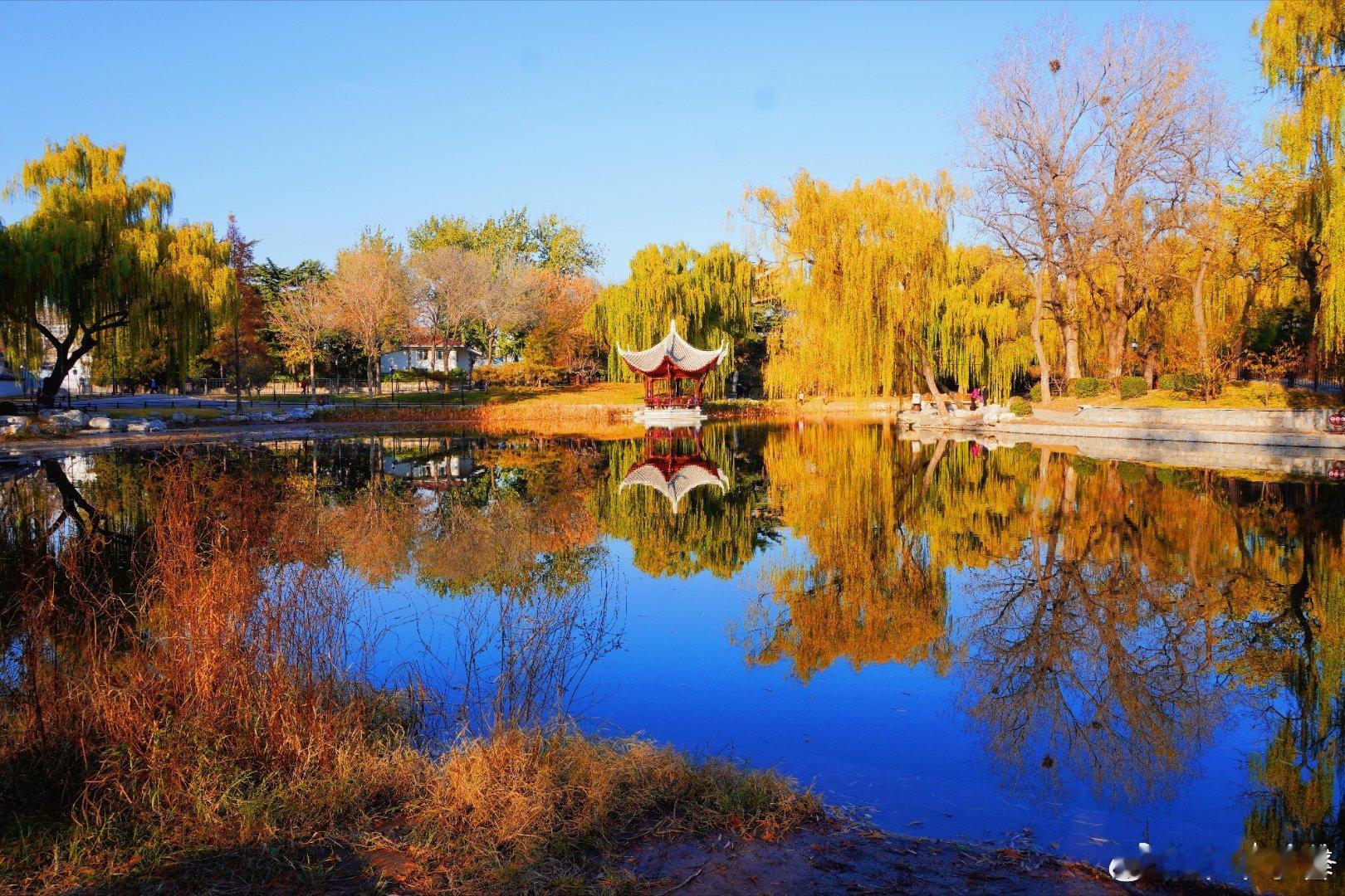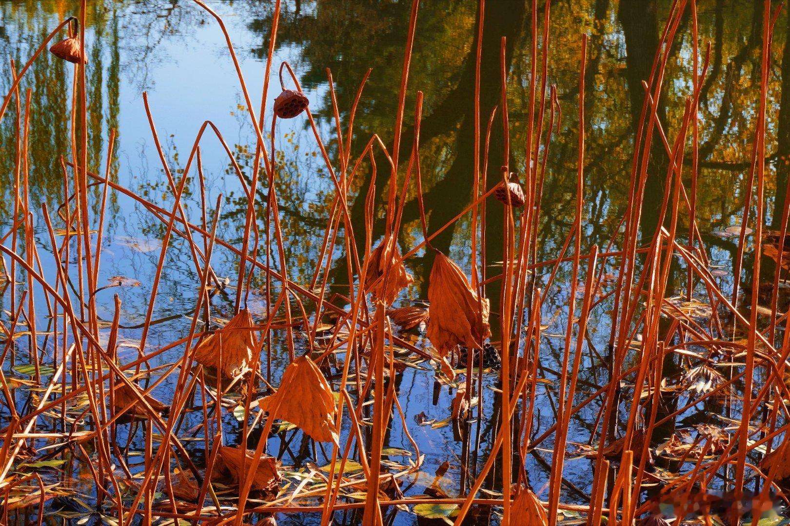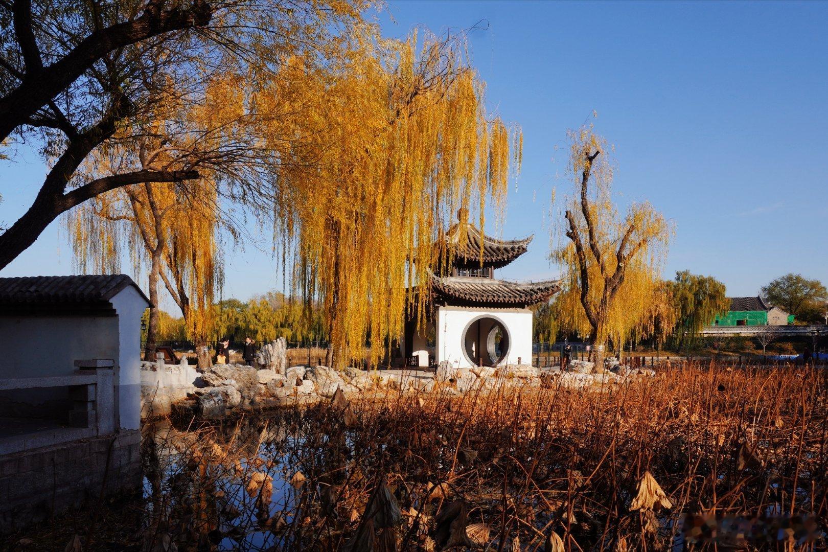 【初冬时节】冬初的陶然亭公园,像幅洗尽铅华的图画。柳丝褪尽绿裳,只剩疏枝勾勒晴空,风过处,摇出几分清寂。湖面敛了夏的喧闹,水色沉成深碧,偶有残荷梗亭亭立着,是时光遗下的标点。亭台红墙在暖阳里格外分明,与阶前几片倔强的黄叶相映,添了层暖意。摄影