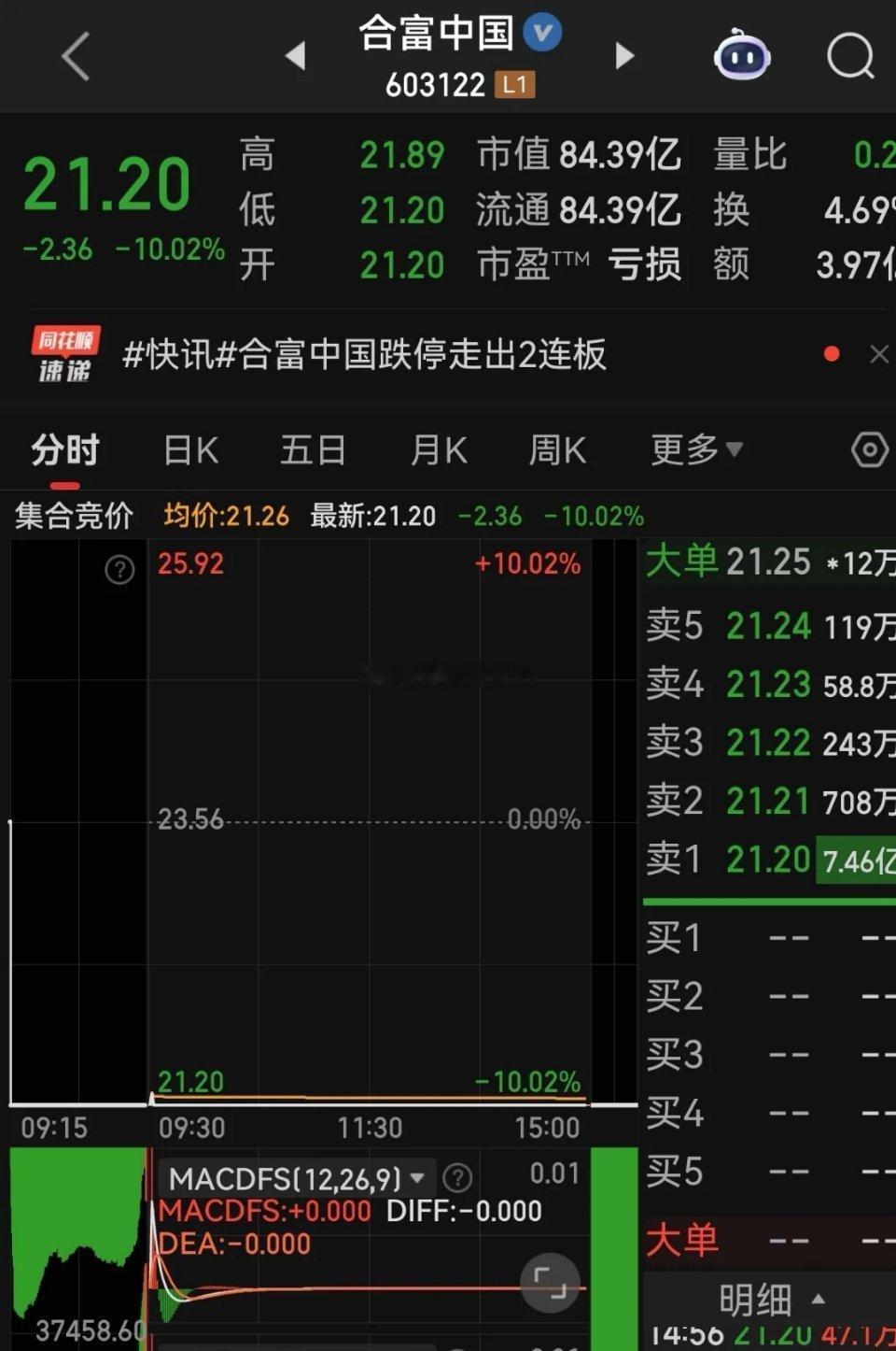 合富中国,有反抽的机会吗?合富中国应该是11月份最耀眼的一只妖股。12个涨停板,从首板到尾板,中间没有收阴。目前已经两个跌停板了,已经跌了20%。如果明天再跌停,那时是很好的进场点。考虑目前市场太弱,信心动摇,尽量少量试仓。10月13日,大涨后的上纬新材在监管利空的条件下跌停-20%,当回调的30%多以后,出现一个短暂反弹。当然,今日的大盘不能与10月份的相比,所以,合富中国如果跌到位,这里可以做一个反抽,快进快出。没有跌到位,直接放弃,即使大涨也不可惜!