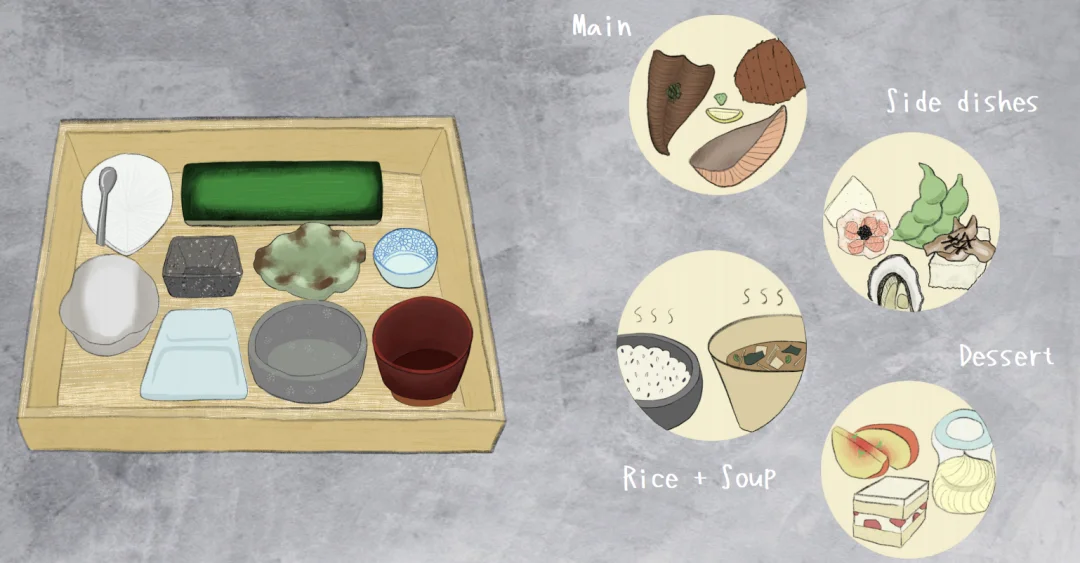 餐厅两面都是玻璃,看起来干干净净特别明亮。定食的规格如图3⃣️所示。但其实当时我都没怎么看这个菜单,我直接问了服务生推荐,她推荐了3⃣️样左右,然后我点了素食🥬的套餐。