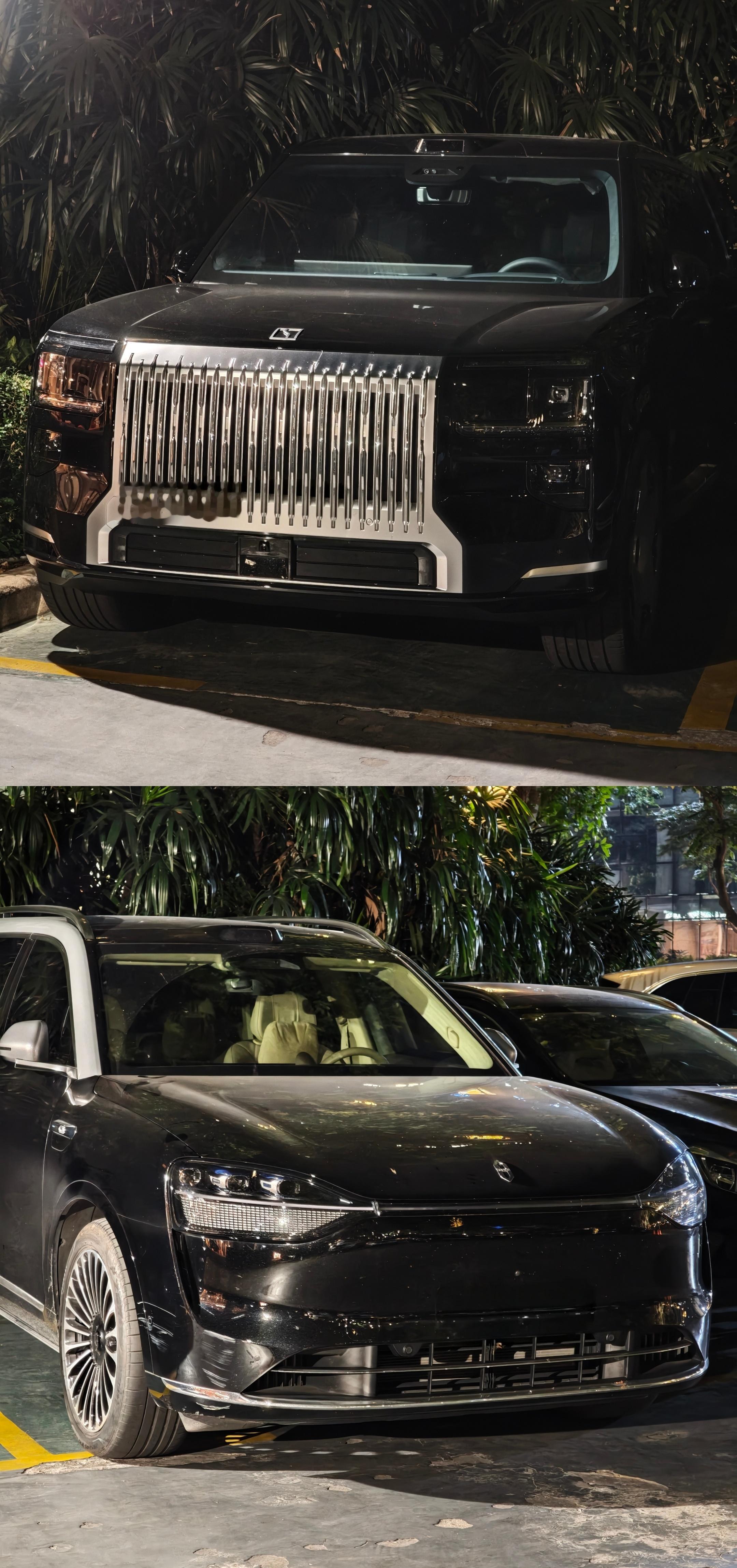 路遇极氪9X和问界M9同框价格差不多,两台车的气场差距还是挺大的图4我把绿牌P掉,感受一下这俩车的车头视觉~
