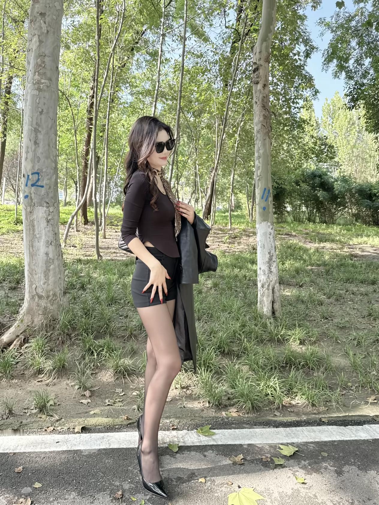 都市女郎的时尚穿搭,树下的优雅姿态能不能发一张你认为最美的风景照片 说说你告别高跟鞋👠的感受 性感黑丝高跟yyds