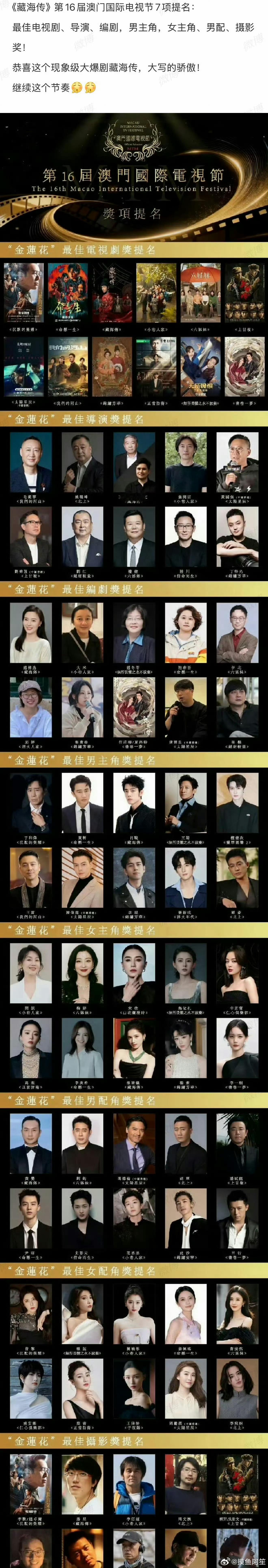 《藏海传》入围金莲花七项奖项,不愧是国剧之光,恭喜🎉期待颁奖礼大杀四方