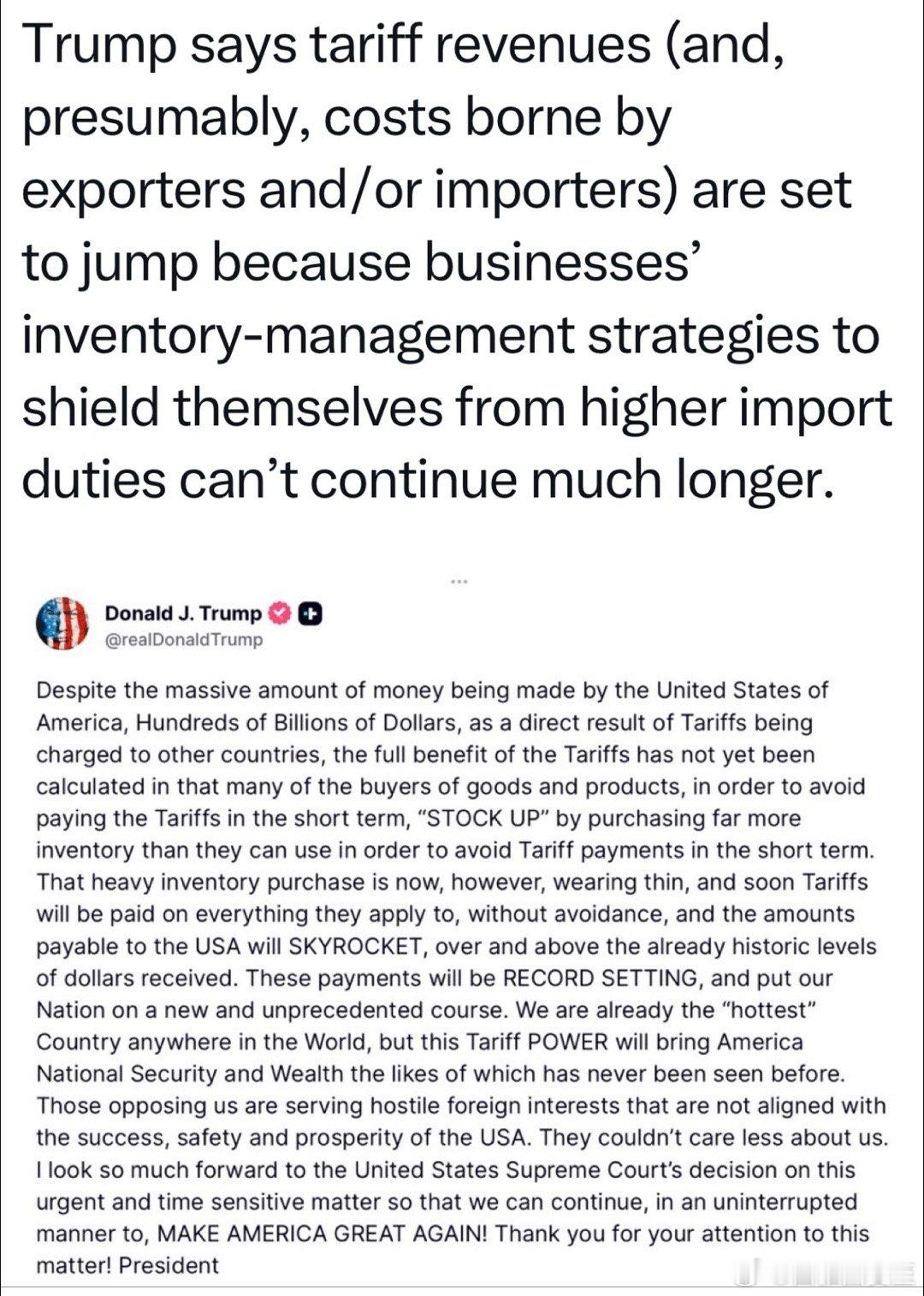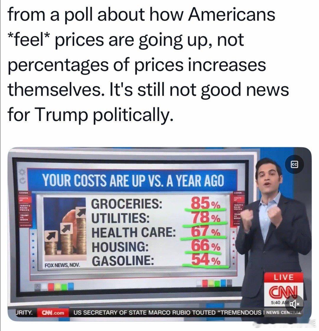 T发帖:关税收入,即将大涨,因为企业避税的方法,坚持不了许久据最新民调,71%民众认为“关税正导致物价上涨”(民主党84%、独立人士74%、共和党59%)大家对物价的“感觉”,比实际情况更糟:买菜做饭贵了85%、水电煤气贵了78%、看病吃药贵了67%、房租房贷贵了66%、给车加油贵了54%其他事可以忽悠,物价不行,普通人对价格都非常敏感