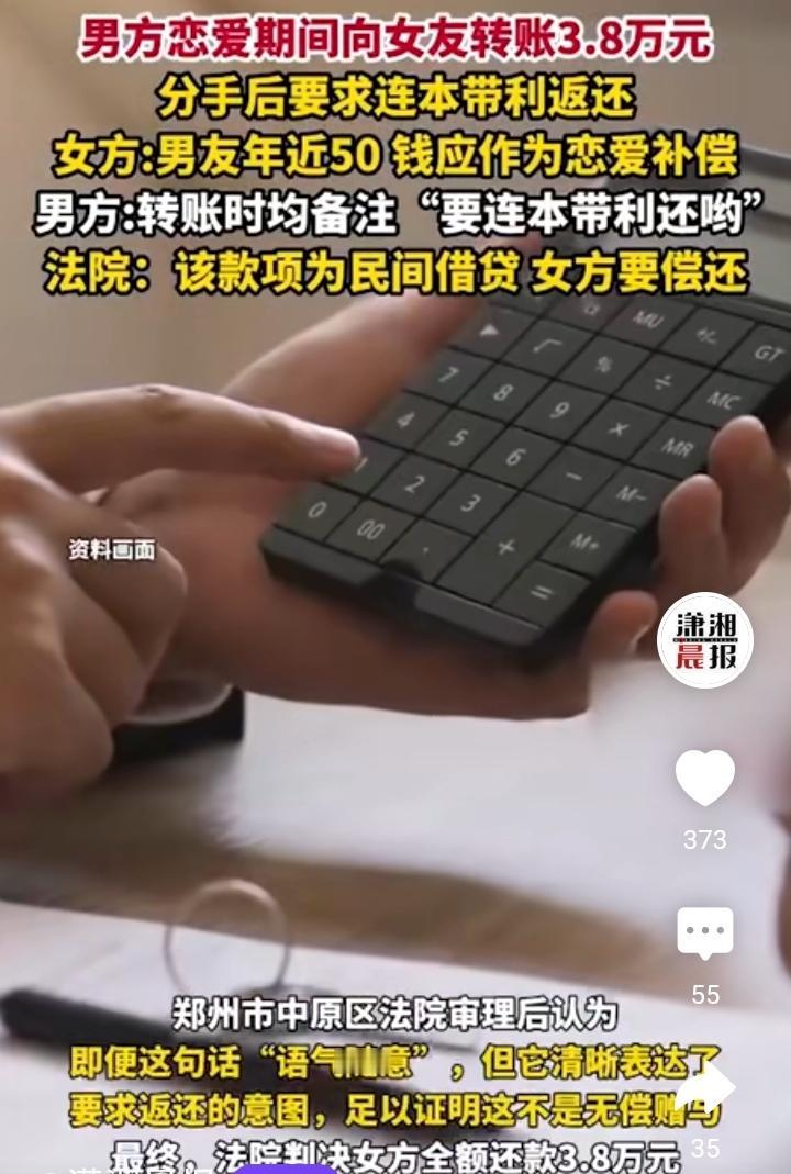 郑州的魏先生通过相亲大会认识了李小姐,然后二人确立恋爱关系,这对于50岁的魏先生无异于铁树开花般灿烂,从2024年12月相识只到分手,李小姐通过急需用钱家里有事等借口多次要求魏先生转账,金额一度高达3.8万元,分手后魏先生要求李小姐还款,可她表示这是因为年龄差之间的补偿不需要还,可魏先生却说,转账的时候已经说明了需要还,他在转账后留言连本带利都要还,可李小姐觉得自己陪伴了魏先生多半年,怎么也得补偿点吧! 可魏先生的做法不惯着她,一纸诉状将李小姐告到法院,最后法官决定要求李小姐还款3.8万元,你们虽然是通过相亲认识,可也算自由恋爱并没有到结婚的地步,对于恋爱期间消费还是AA或者谁买单属于自愿行为,可对于转账魏先生明确表示需要还,是李小姐觉得这是必要的费用,最后法官给予的决定比较公证。 怎么说呢魏先生50岁还是单身也是有原因的太老谋深算,李小姐找50岁的本来就是想占点便宜,可没想到遇到了比铁公鸡还小气的铝公鸡,只能说如意算盘谁都会打,可结果就要看你的蜡烛够不够亮了,或者说谁的鲍鱼够不够味,只能说有人占便宜就会有人吃亏,有人吃亏就会有人占便宜,毕竟都50岁了别人陪伴了多半年,怎么也得给人家一定青春损失费,这魏先生有点不地道,李小姐只能是赔了夫人又折兵,得不偿失。