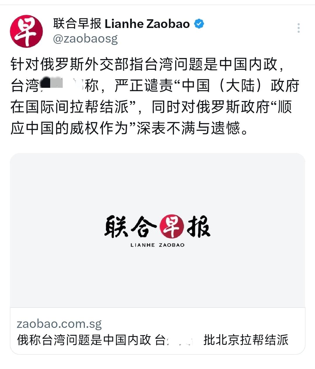 新加坡联合早报昨晚(11月22日晚)写道:“针对俄罗斯外交部指台湾问题是中国内政