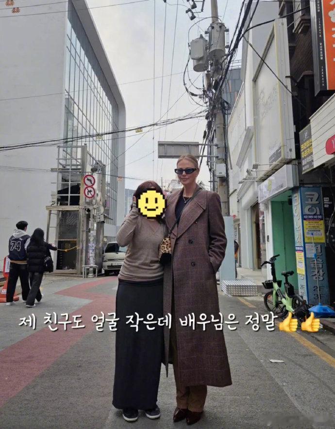 23日,网友在首尔弘大街道偶遇好莱坞演员查理兹・塞隆与女儿一同游玩,塞隆身着棕色长款大衣、戴着墨镜,与女儿亲密挽着胳膊在街上散步。