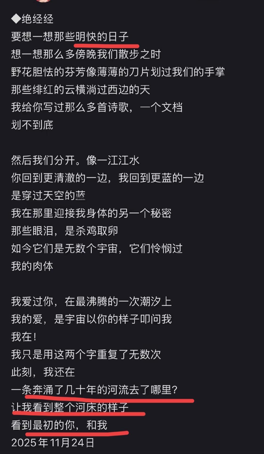 闭经=必经,做女人都得经历这一关,但余秀华将它写成了诗,这就是她的特别之处。 月经这种东西,有之嫌烦,无之会想。它谢幕了,女人人生中的某个时代也结束了。 佩服余秋华能用诗歌来与大姨妈告别,这种直面也是需要勇气的。 闭经,更年。 烦恼和欢愉走了一对,也来了一双。 有它无它,各有各的好。在下一阶段,一样可以明快着过的。