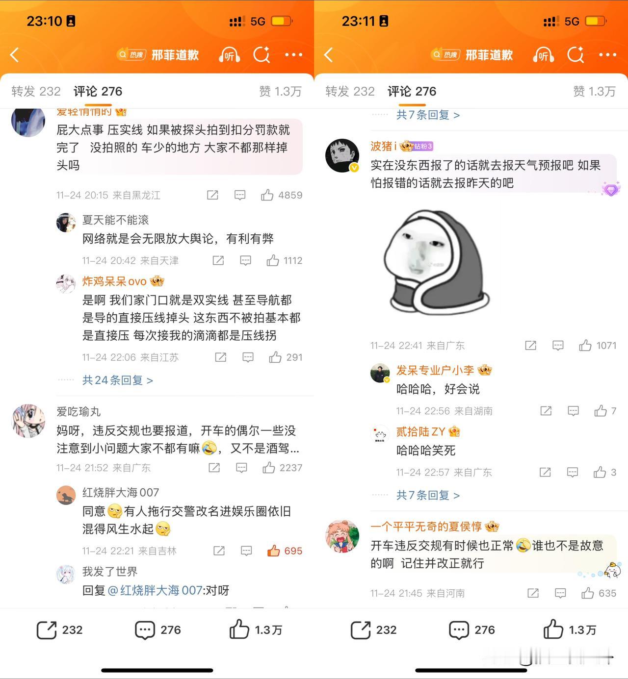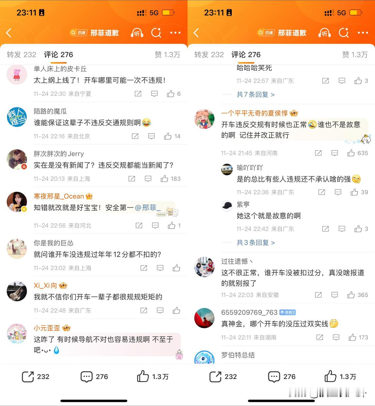 女演员邢菲变法制咖,却被网友力挺 不是因为她背后的资本强大 而是因为她犯的这个法好多人都犯过! 八卦媒体曝邢菲开车压双实线调头疑违规。不到两小时她已经发文道歉:“没有任何借口,对不起!违反交通规则是我不对。以后一定认真遵守交规,绝不再犯!” 评论区网友带入自己,纷纷表示理解。“谁开车没违规过?12分年年不扣的吗?” 认错态度诚恳,加上没出事,没伤人,就是压了个双实线,公众带入自己理解居多。 一场公关危机完美化解。