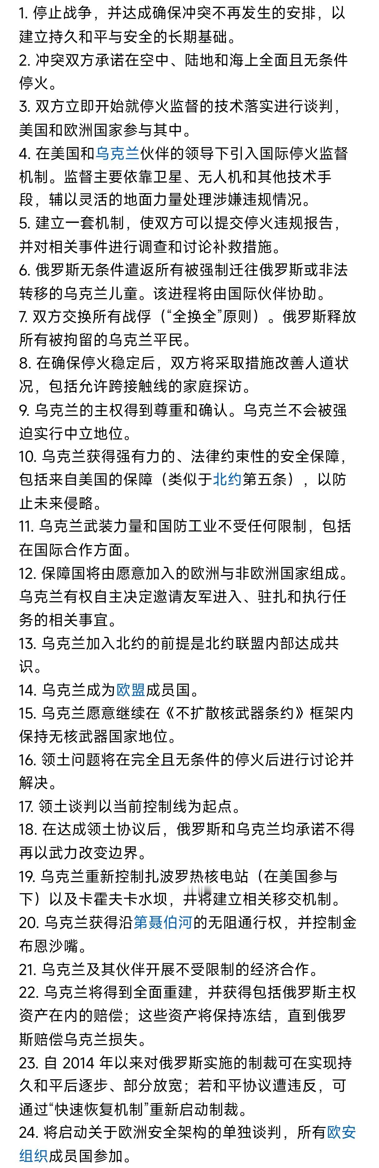 美国的“28点计划”VS欧洲的“24点计划”! 只能说他们都各自站在了自己的立场给出了各自计划,但即便这样他们仍然有一个共同点,那就是两个方案都无法达成停战协议。因为美国的“28点计划”乌克兰不会同意,而欧洲的“24点计划”俄罗斯也不会同意,所以最后的总结就是“白忙活一场”! 坦白说当初美国不想乌克兰停战是因为有利可图,当然他也成功的拿到了矿产协议和卖足了武器,乌克兰现在已经没有任何值钱的东西了,连到时候重建美国都提前给包圆了,所以欧洲一直反对乌克兰停战是图什么?难道有人会相信那是欧洲对乌克兰的感情吗?