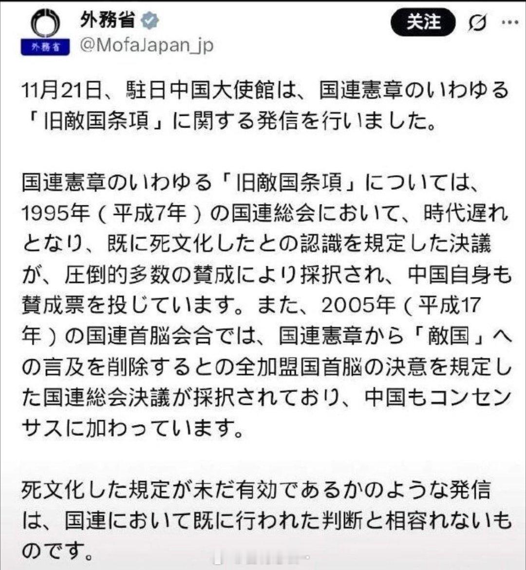 《敌国条款》只有在战败国表现出侵略行为时才会被触发,日本政府着急忙慌地想撇清《敌国条款》,心该有多虚啊?
