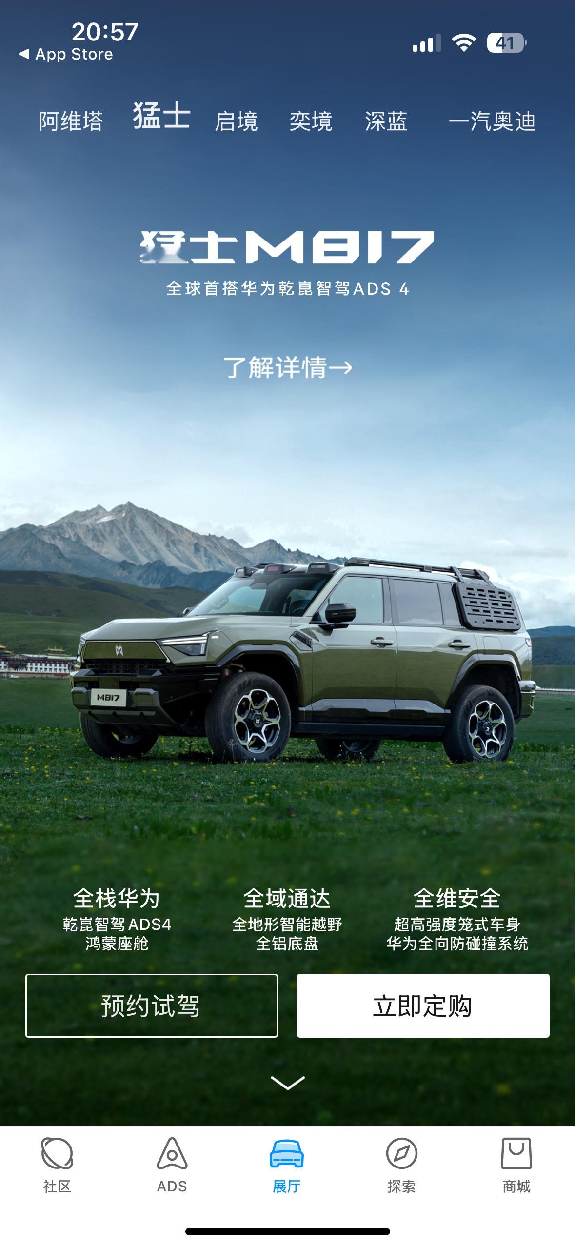 刚发现,新上线了个“华为乾崑”在这个软件里可以买阿维塔、猛士、深蓝、一汽奥迪未来还会有跟广汽合作的启境跟东风合作的奕境第一次看到一个应用,容纳多品牌的车型和用户社区,反正大家都用ADS辅助驾驶,应该有的聊