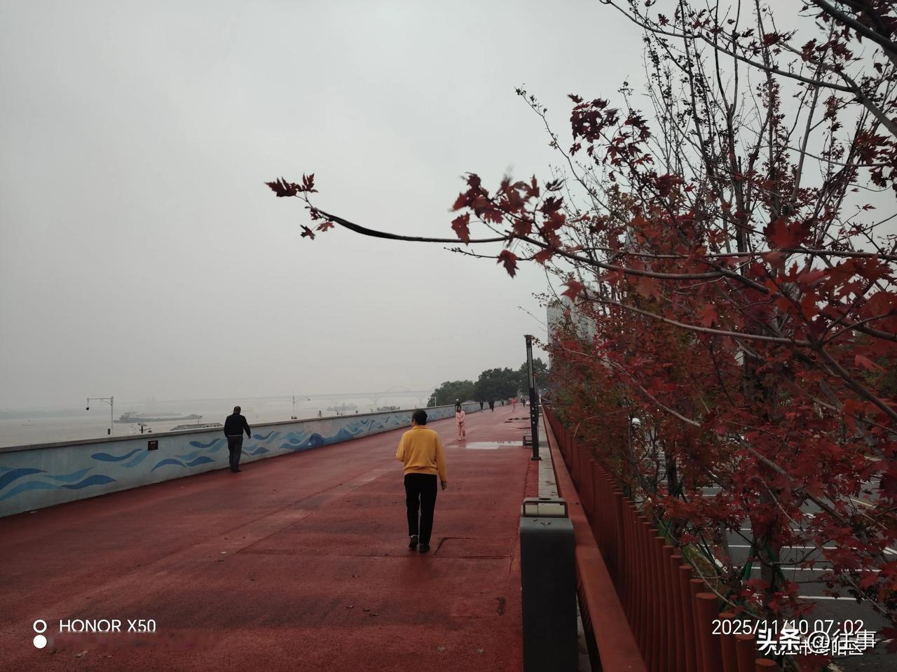 我的今日状态:🏝️旅行度假 我这里的天气:🌤️多云11月11日长江岸边晨练打