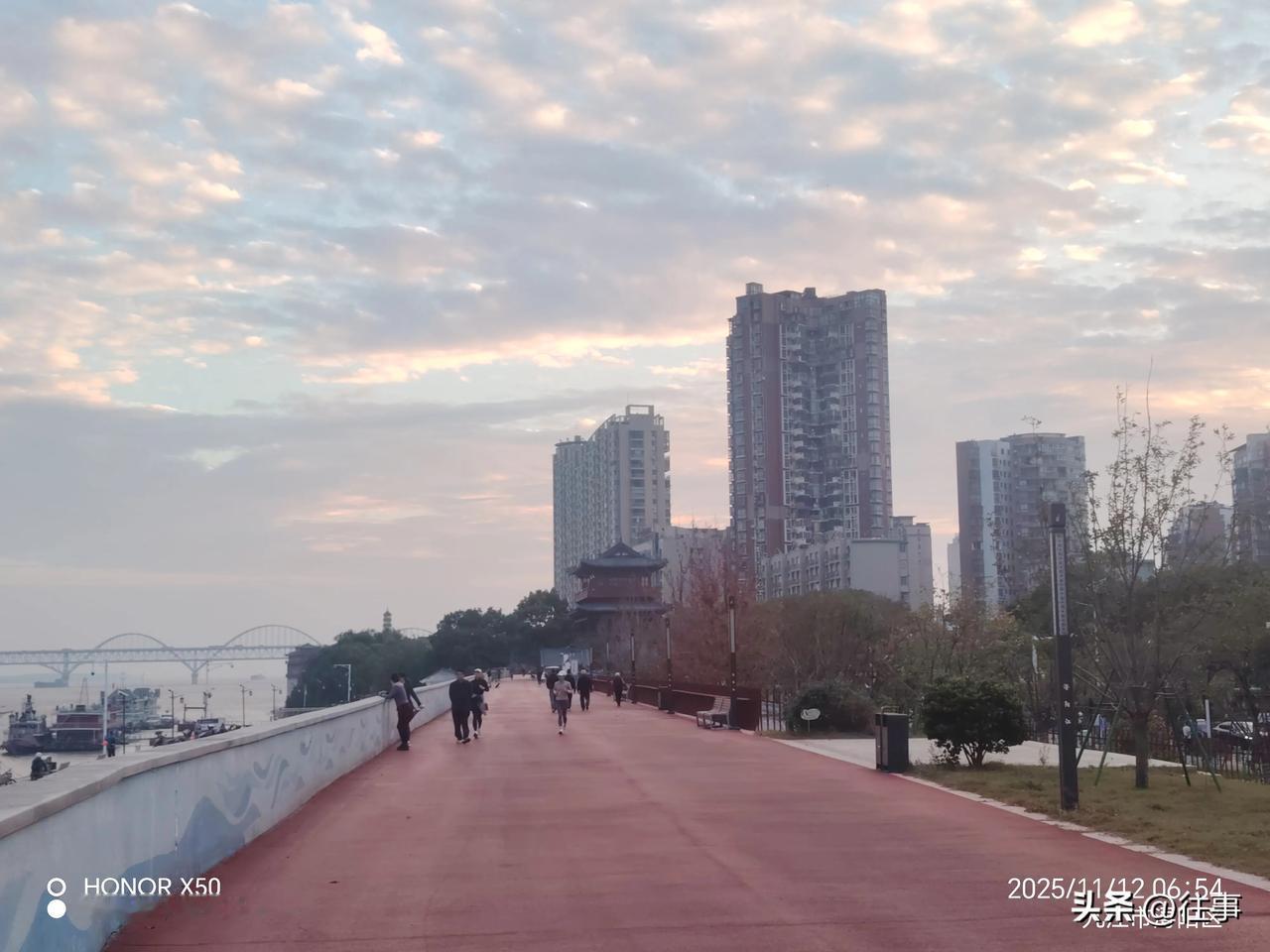 晒图笔记大赛11月12日长江岸边晨练打卡