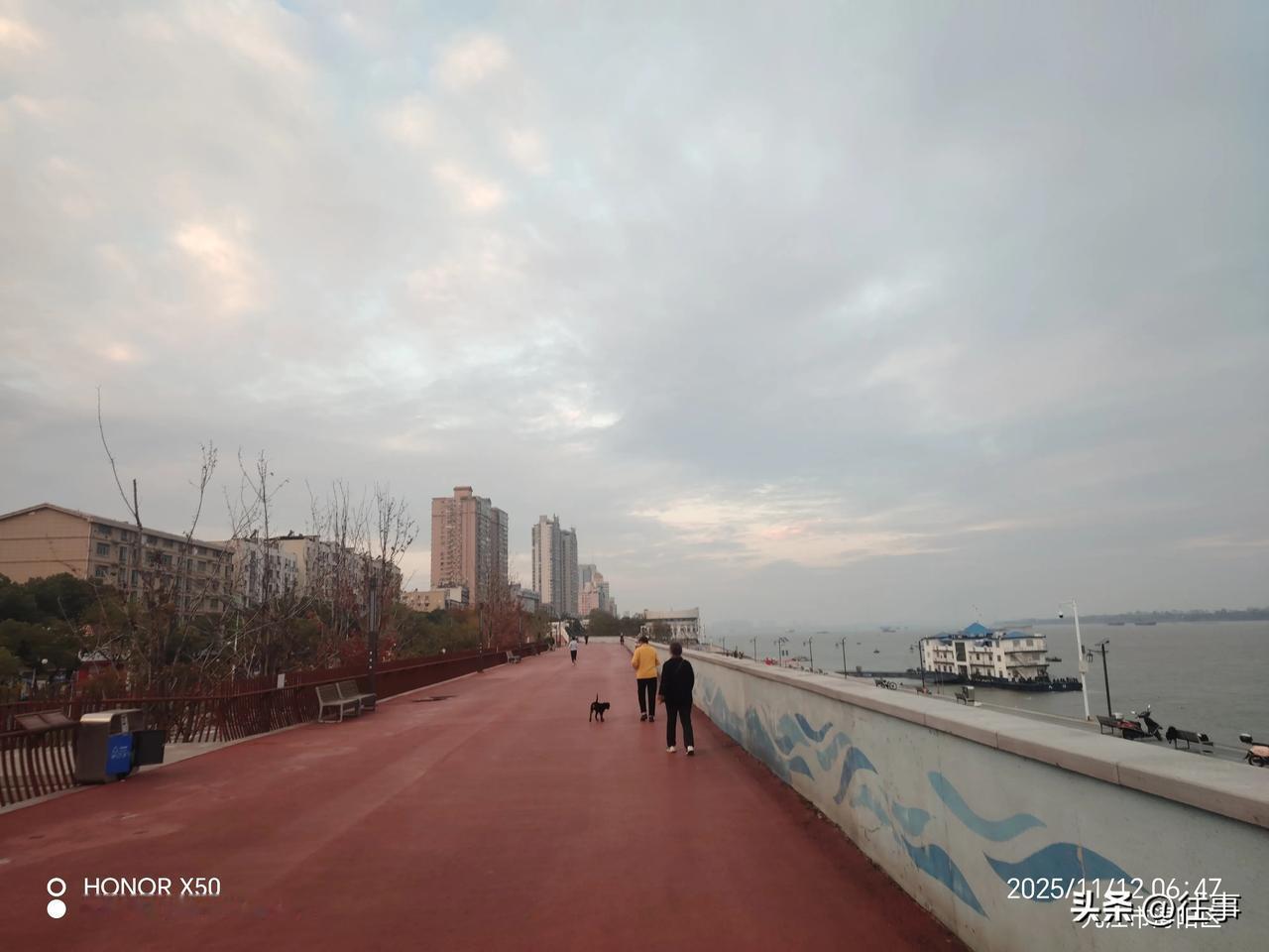 我的今日状态:🏝️旅行度假 我这里的天气:🌤️多云11月11日长江岸边晨练打