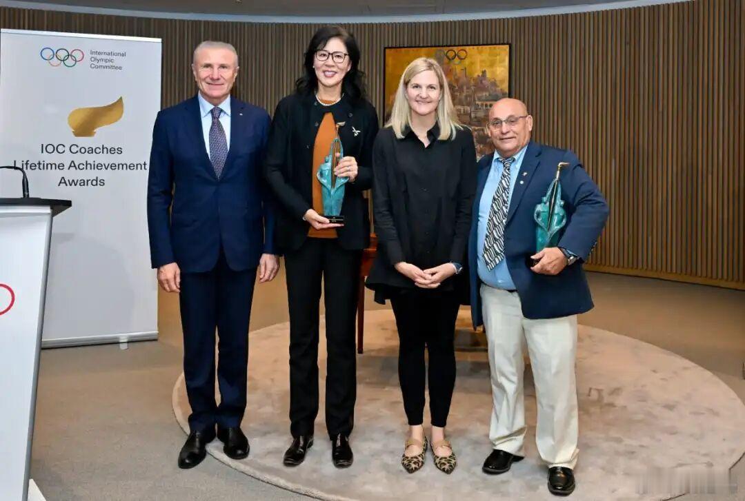 绝对实至名归,不仅是中国排球、中国体育的骄傲,更是世界上不可多得的传奇人物,无论是球员还是教练时代, 给我们留下了太多美好的回忆,也有很多有着她浓厚印记的沉甸甸的荣誉……退役后,离开第一线后,依然为只热爱的事业贡献力量!她配得上一切名头和奖项,恭喜郎导——郎平与古巴摔跤教练劳尔·德·赫苏斯·特鲁希略·迪亚斯共同获得了国际奥委会颁发的教练终身成就奖,国际奥委会主席克里斯蒂·考文垂、国际奥委会成员谢尔盖·布勃卡为他们颁奖。
