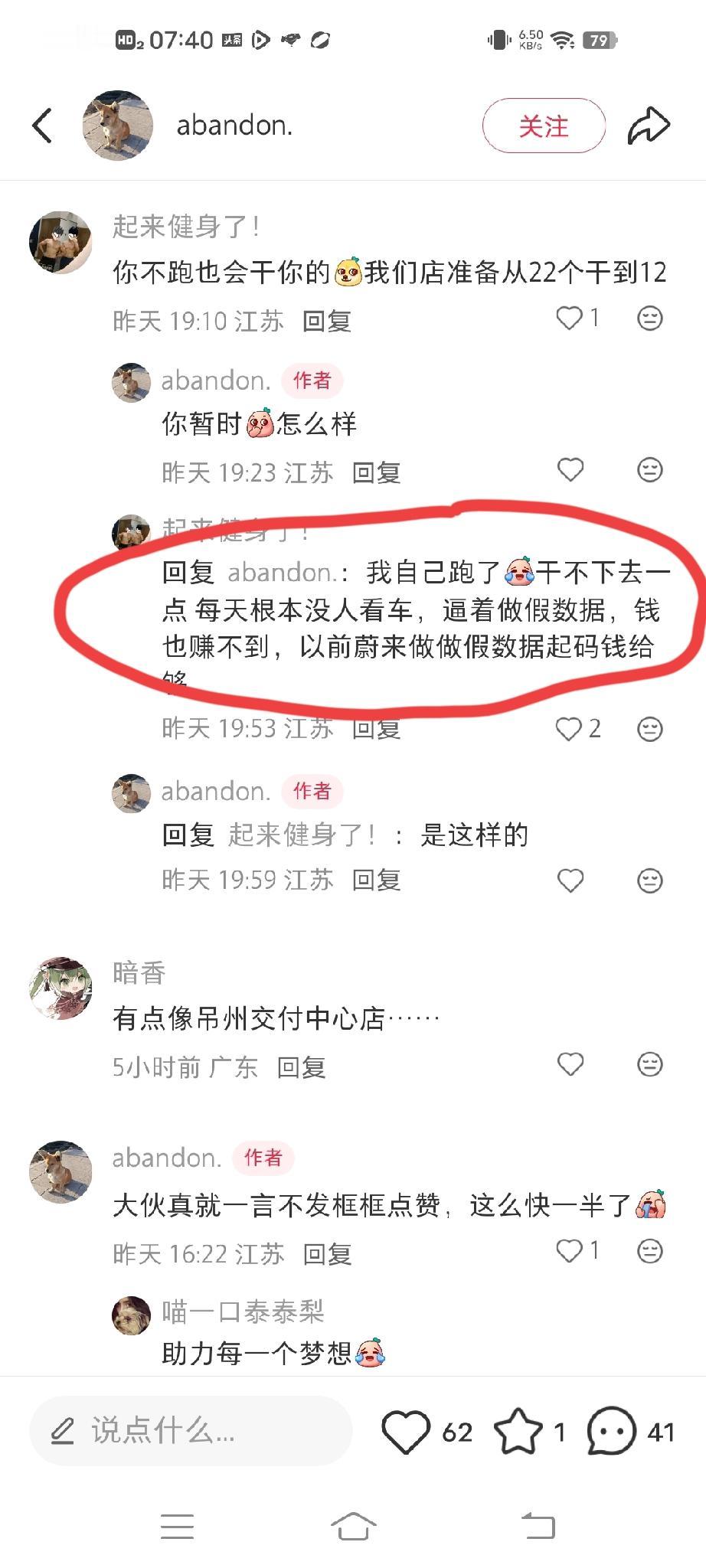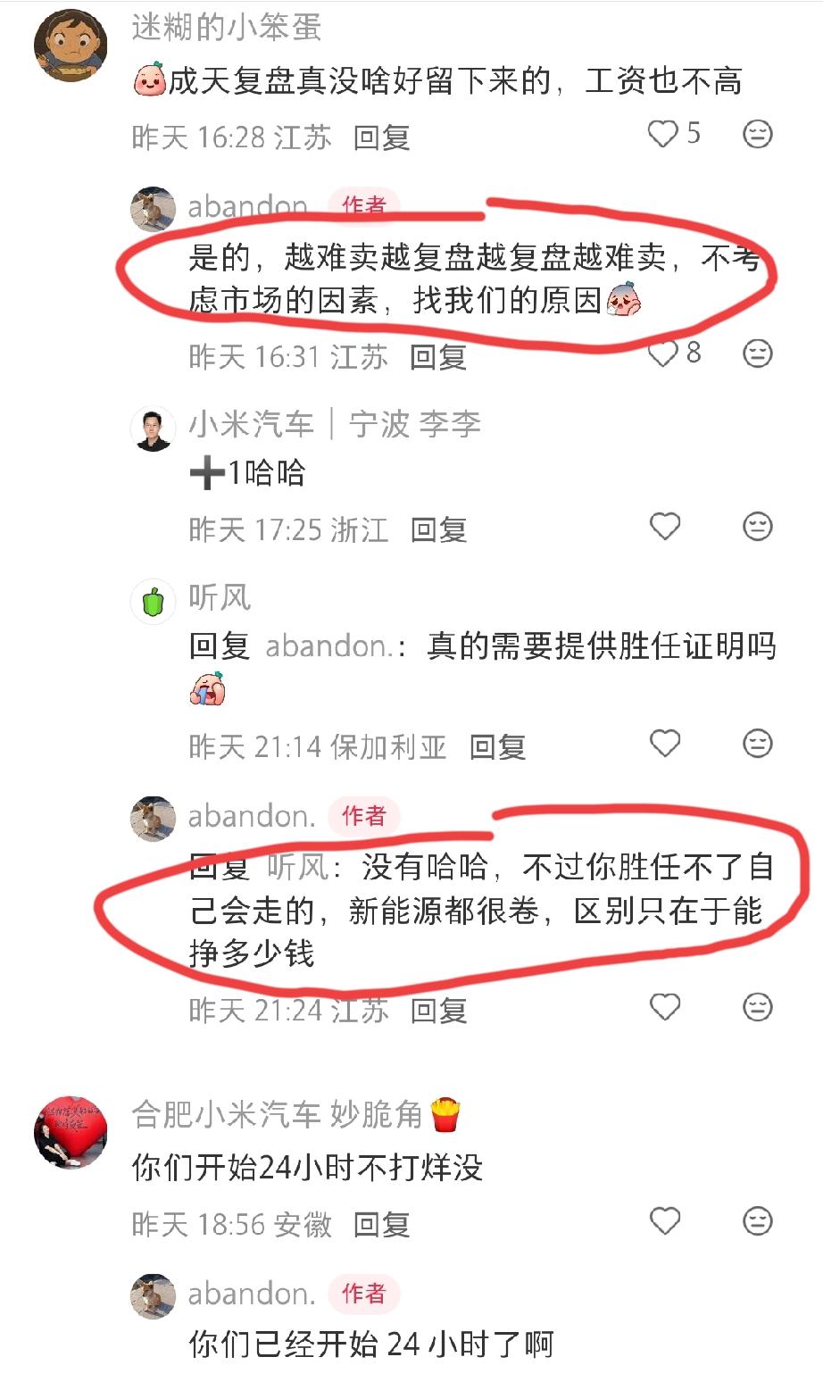 疑是某粮汽车门店销售部门员工在社媒发文:天天复盘,越复盘越难卖,越难卖越复盘,好想走又下不了决心,真的太累了…… 评论区有网友深有同感:自己也干不下去了,每天根本没人看车,逼着做jia数据,钱也赚不到。人家公司起码给钱。 看了这位网友的账号,目前为止就这么一篇吐槽的文章,他嘴里说的是否都属实,还不太好说,大家理性判断! 可这个品牌汽车的销量,在我们外人看来还是非常不错的,每个月的销量和交付量都在冲新高,难道其中还有内情?