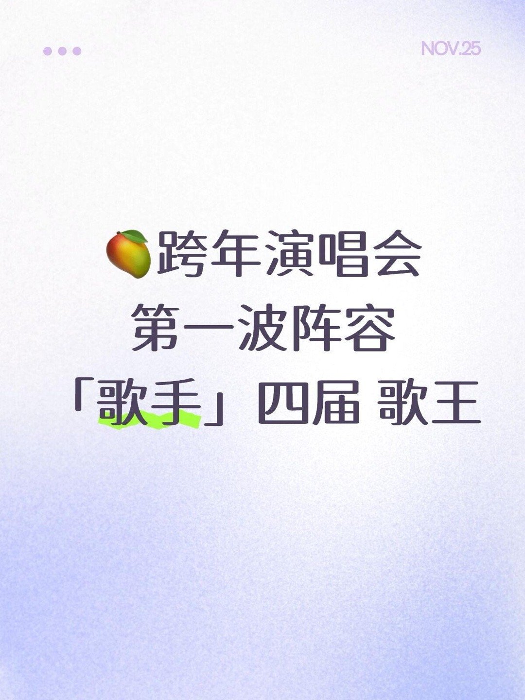 🥭跨年演唱会第一波阵容「歌手」四届歌王