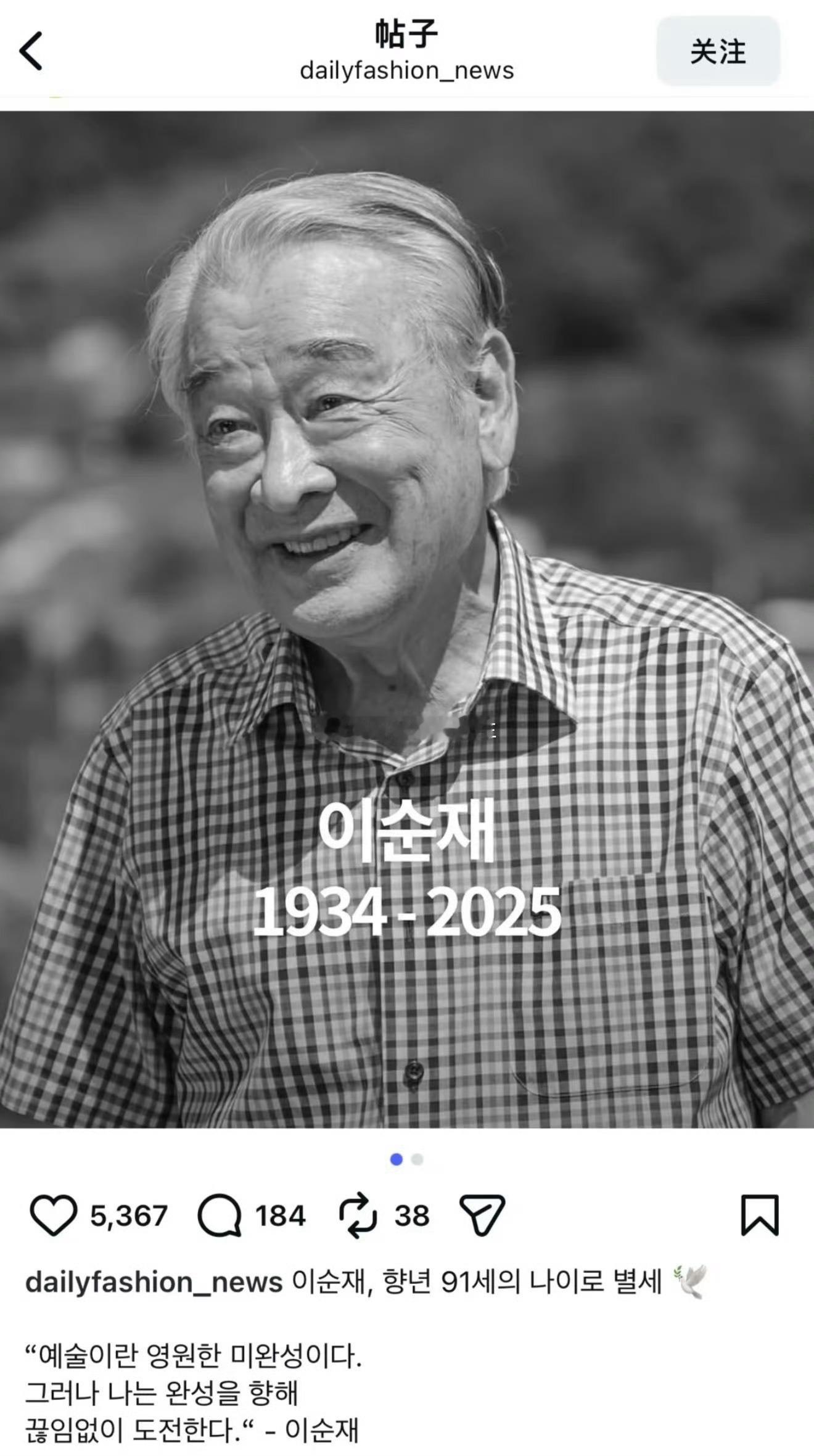 对于中国观众而言,李顺载的名字早已和刻在记忆里的经典角色牢牢绑定。《搞笑一家人》里那个傲娇又嘴硬的李顺才爷爷,怕是最深入人心的存在——会为了私房钱和罗文姬斗智斗勇,会把误诊当医术闹出笑话,看似专制霸道,却藏着对家人最柔软的牵挂。而《澡堂家的男人们》里的大家长,《公主的男人》中的资深前辈,每一个角色都被他演绎得鲜活立体,让不同年代的观众都能感受到演技的魅力。91岁的高寿,是岁月给予这位老艺术家的温柔馈赠,但当熟悉的面孔永远定格在银幕上,心里还是满是不舍。那些年他带来的欢笑与感动,那些藏在角色里的家庭温情,早已成为一代人的集体记忆。李顺载先生,一路走好。感谢您用一生的热爱,为我们留下了这么多温暖的光影印记。