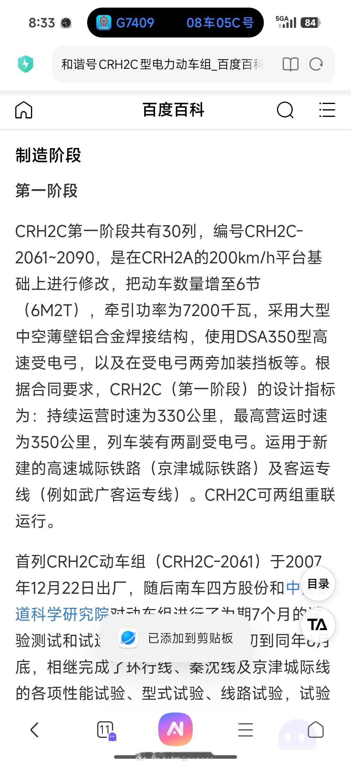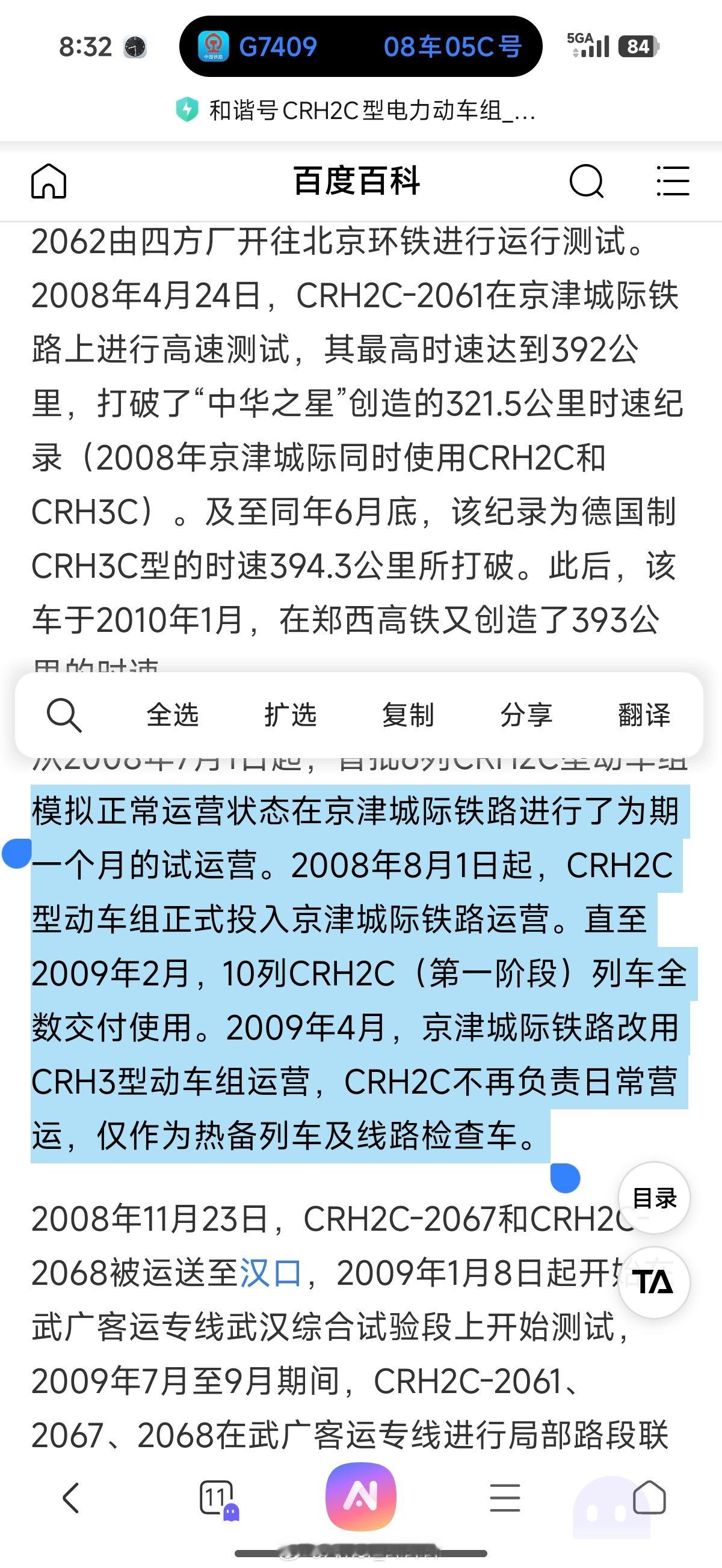 早,回学校采集学历图像,坐的是CRH2C-2064。刚刚搜了下,CRH2C第一阶段共有30列,编号CRH2C-2061~2090,所以我坐的这列下线时间大概是2008年,2009年初投入使用……