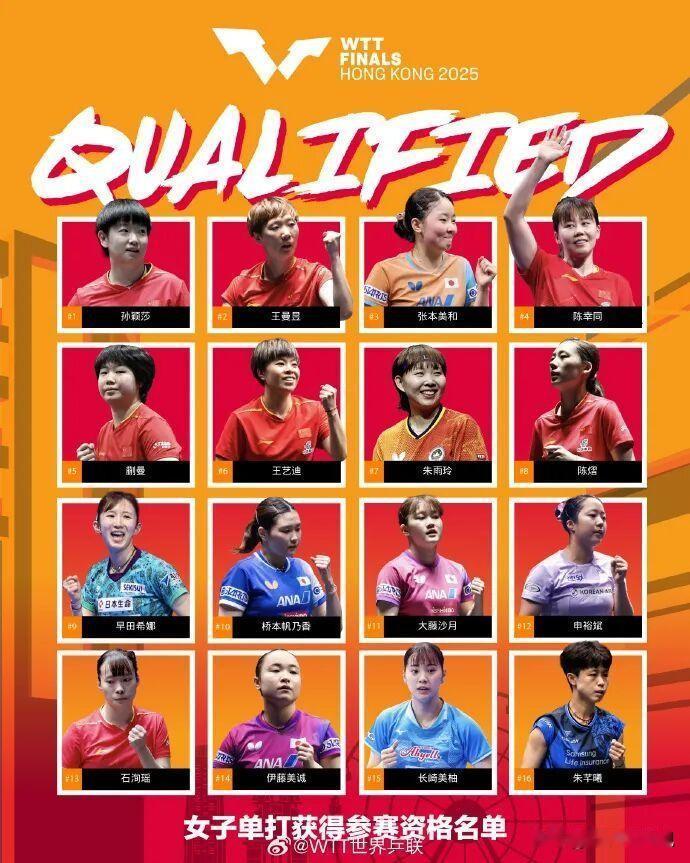WTT香港年终总决赛被亚洲垄断了。 是的,女单名单一公布,估计连