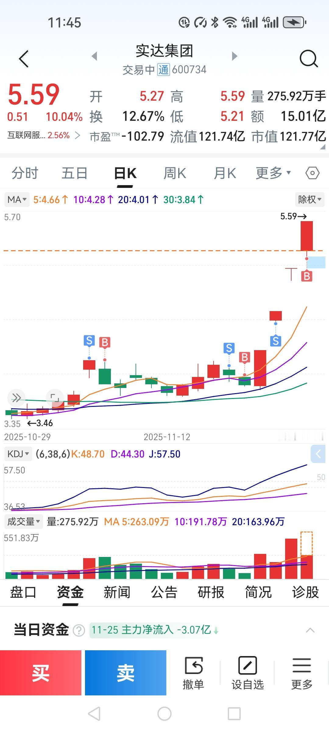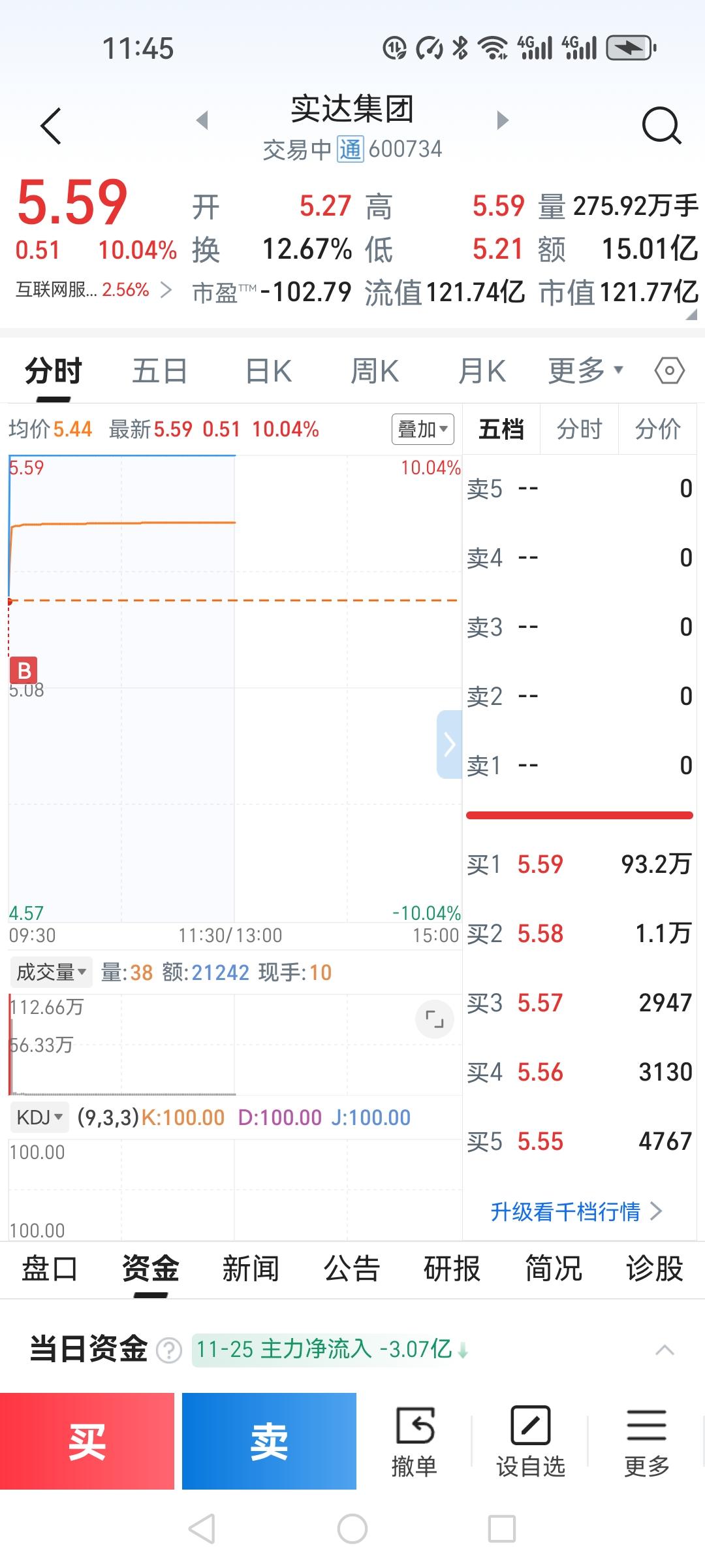 今天我做了一个最正确的决定,就是集合竞价买入实达集团。 11月5号实达集团第一
