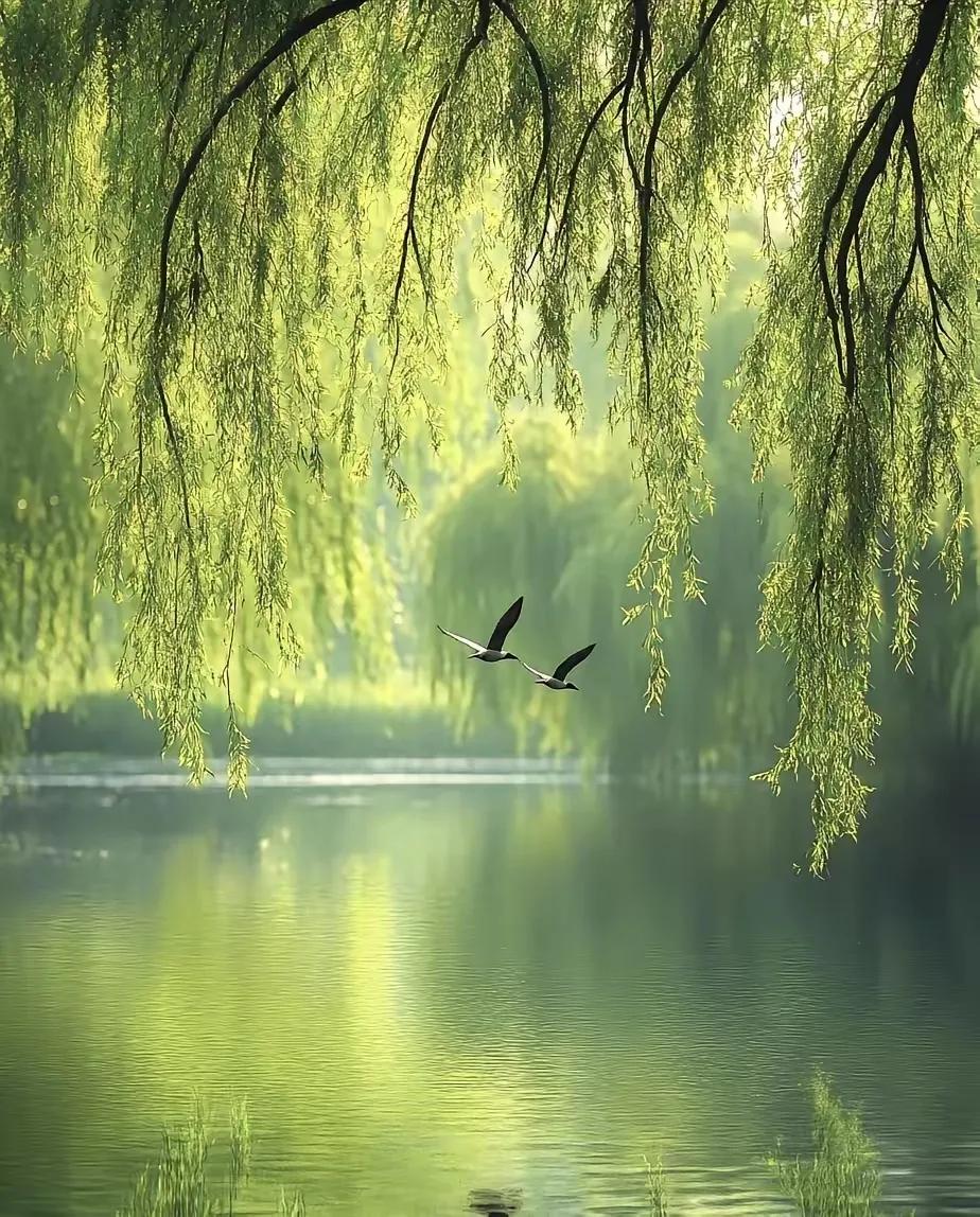 上联:风拂竹岭千枝翠,请您对下联雾笼柳堤万缕青