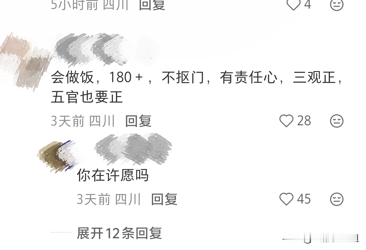 四川人打死都不会动摇的择偶标准有哪些?答案让你想不到! 作为一个四川人还是很想知道作为四川的男男女女打死都会动摇的择偶标准到底是什么?结果网友们除了正常的责任心三观正和五官正之外,还有一些要求外地的朋友估计你想不到,也理解不了! 第一,坚决不出川渝,因为觉得外面的菜太难吃; 第二,男生表示可以婚后打他,但是不能打死了,真是典型的耙耳朵要求呀; 第三,必须能吃辣,女方要求男生必须会做饭,且爱做饭; 当然因为川渝男生普遍不高,很多美女执着于要找180+的,我觉得这个在四川还是有点难度的[捂脸] 所以,作为四川人你们觉得这些要求靠谱吗?还有什么特别的择偶标准吗? 择偶分析 四川找对象
