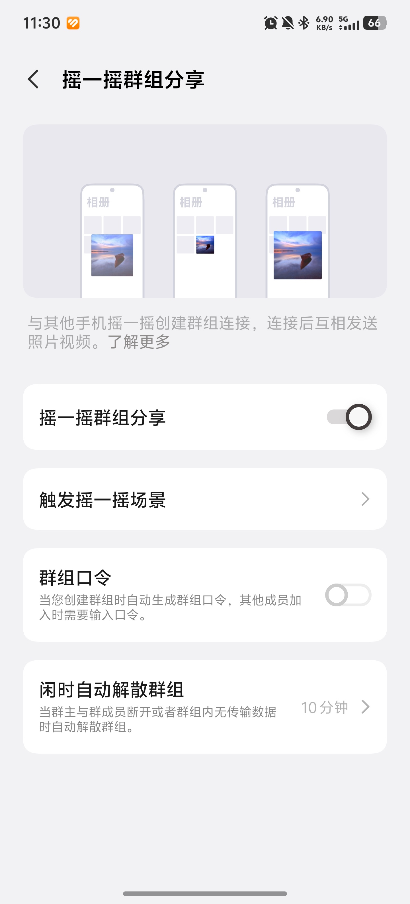 目前国产手机基本都打通了和iPhone的互传,不过在多人分享这块,我觉得蓝厂的摇一摇群组分享还是挺方便的,出门和朋友一起拍照,不用一个一个互传了