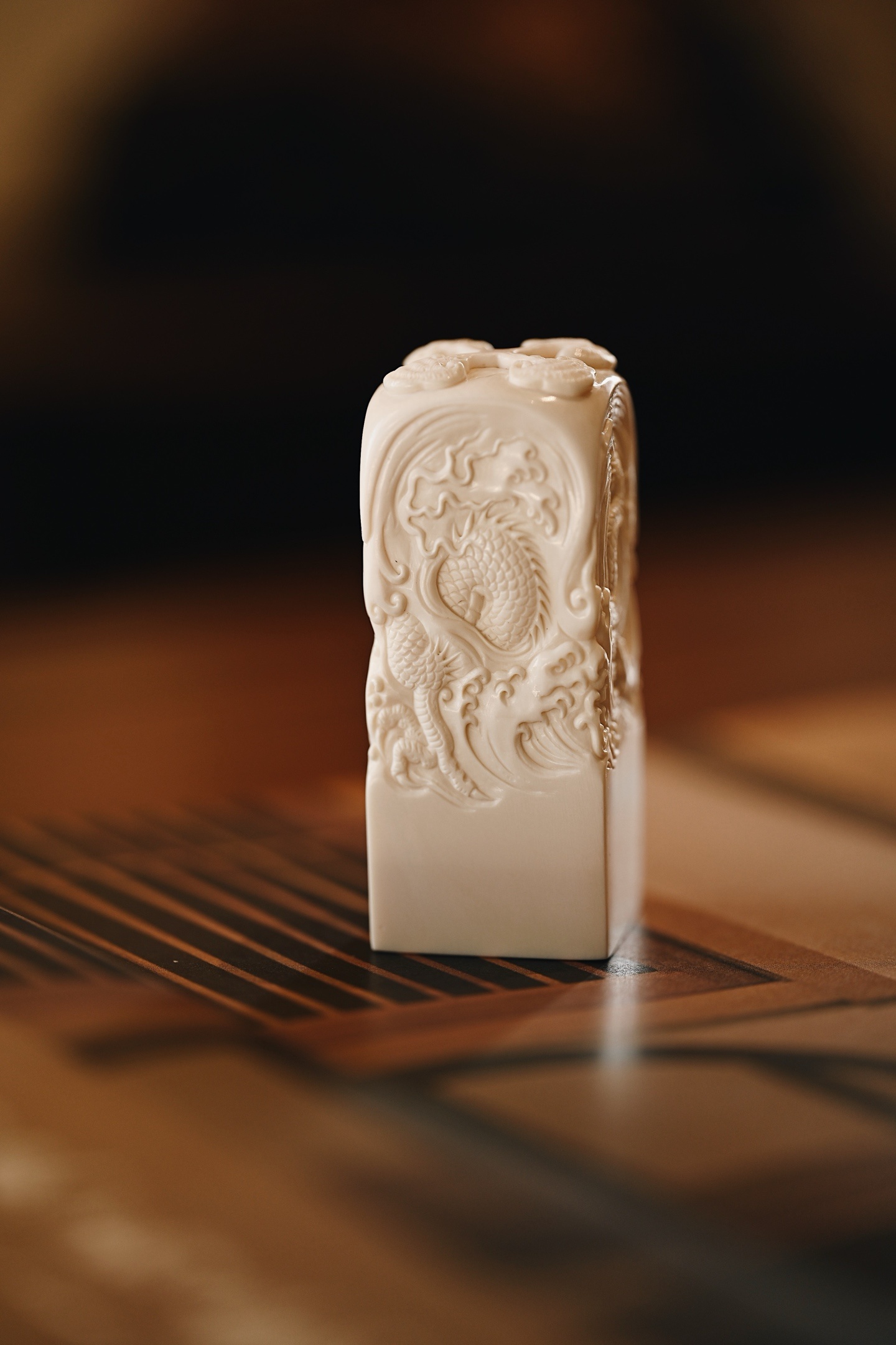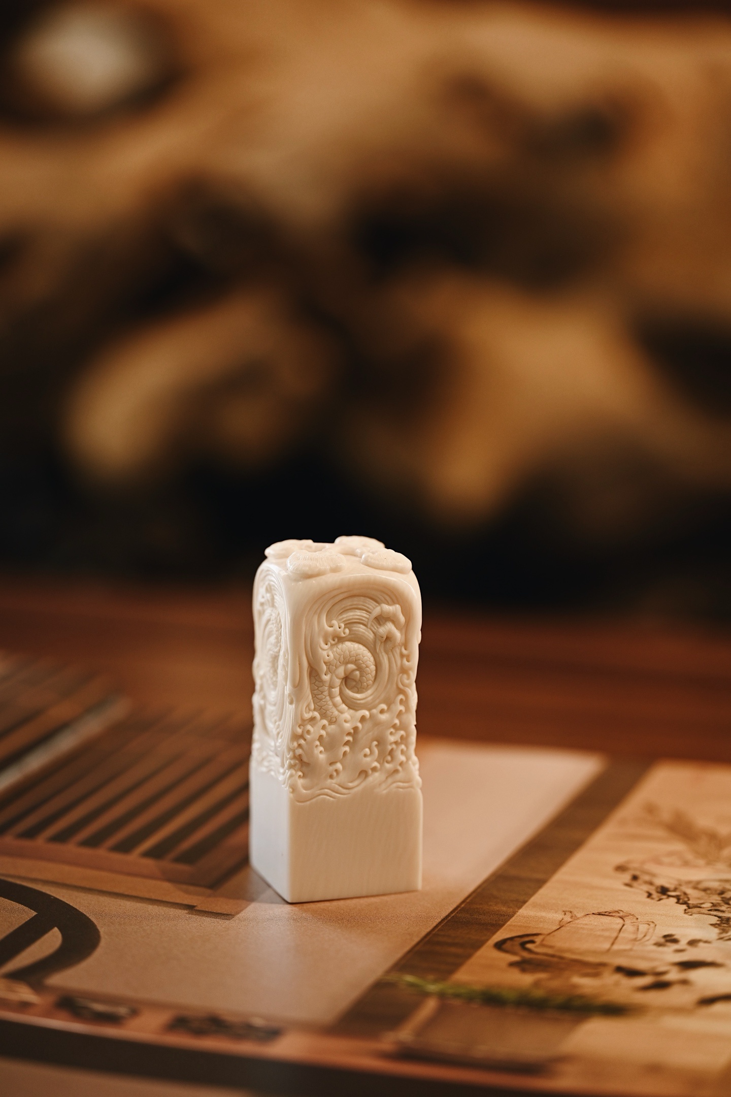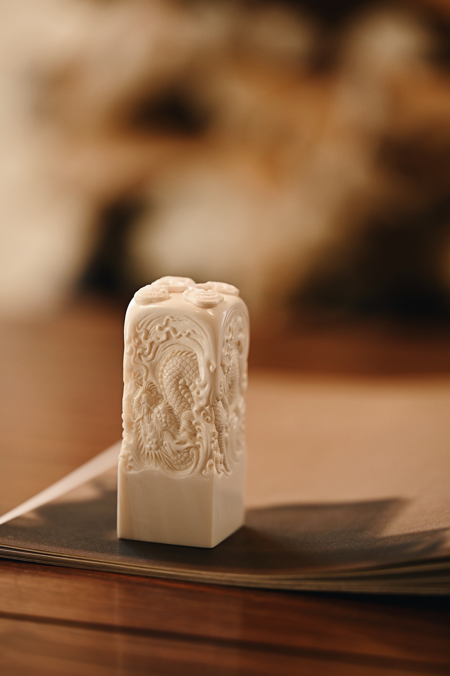 猛犸 | 云龙 印章雕刻通透干净,运刀贯连一气,飞龙身躯蜿蜒矫健,转折盘绕,指爪张扬有力,云海波涛汹涌,是不可多得的文房小物。3*3*7.2cm 96g