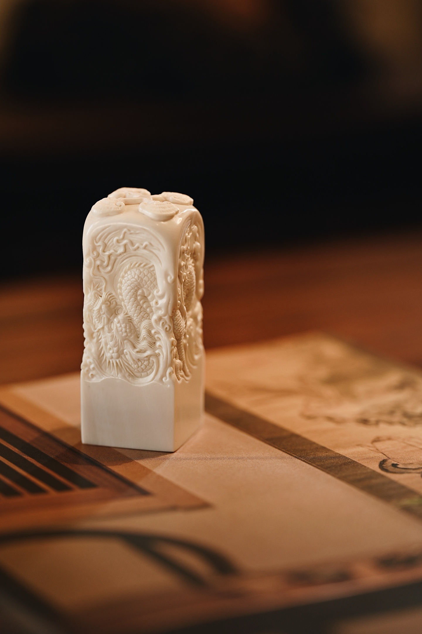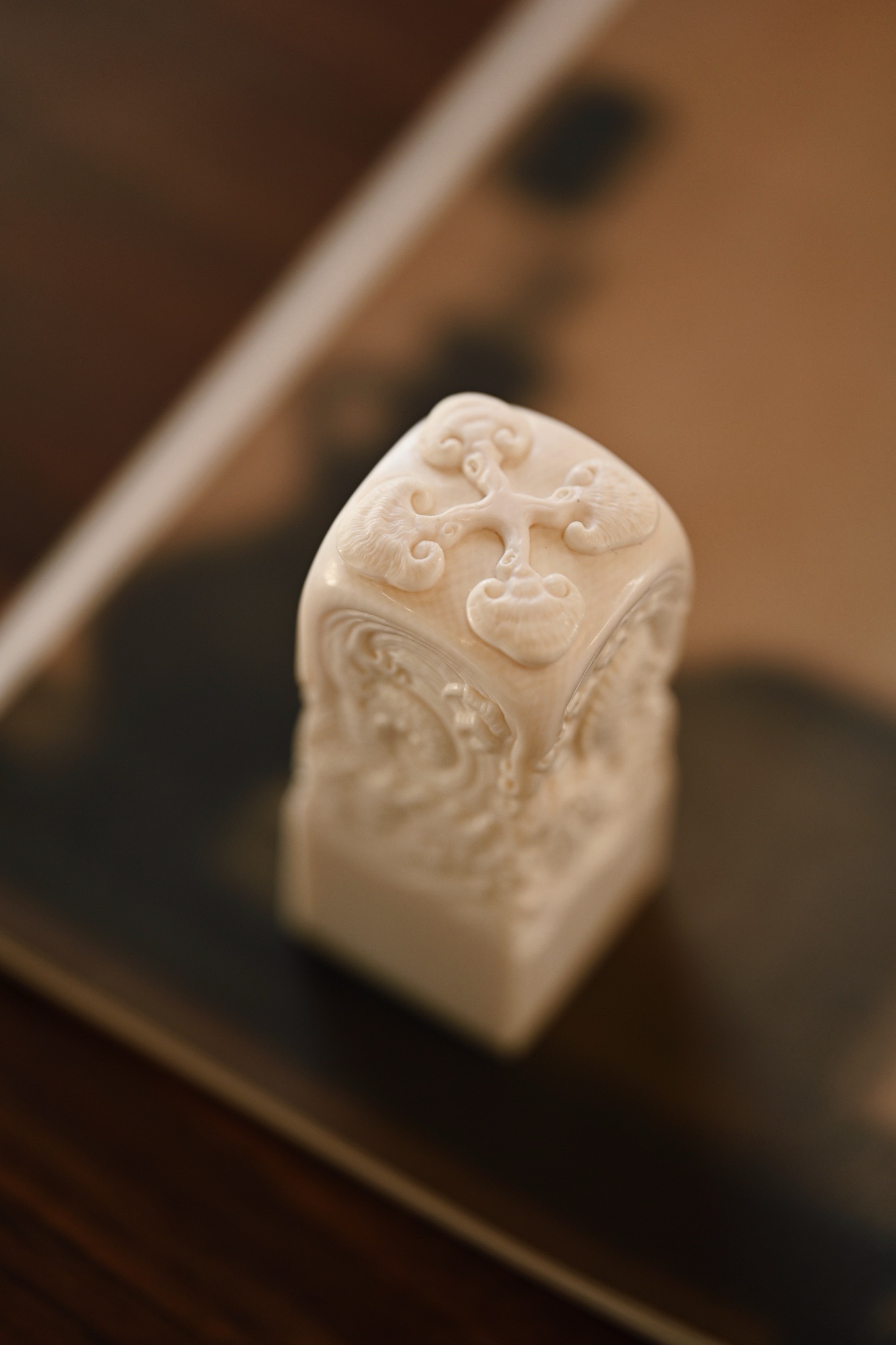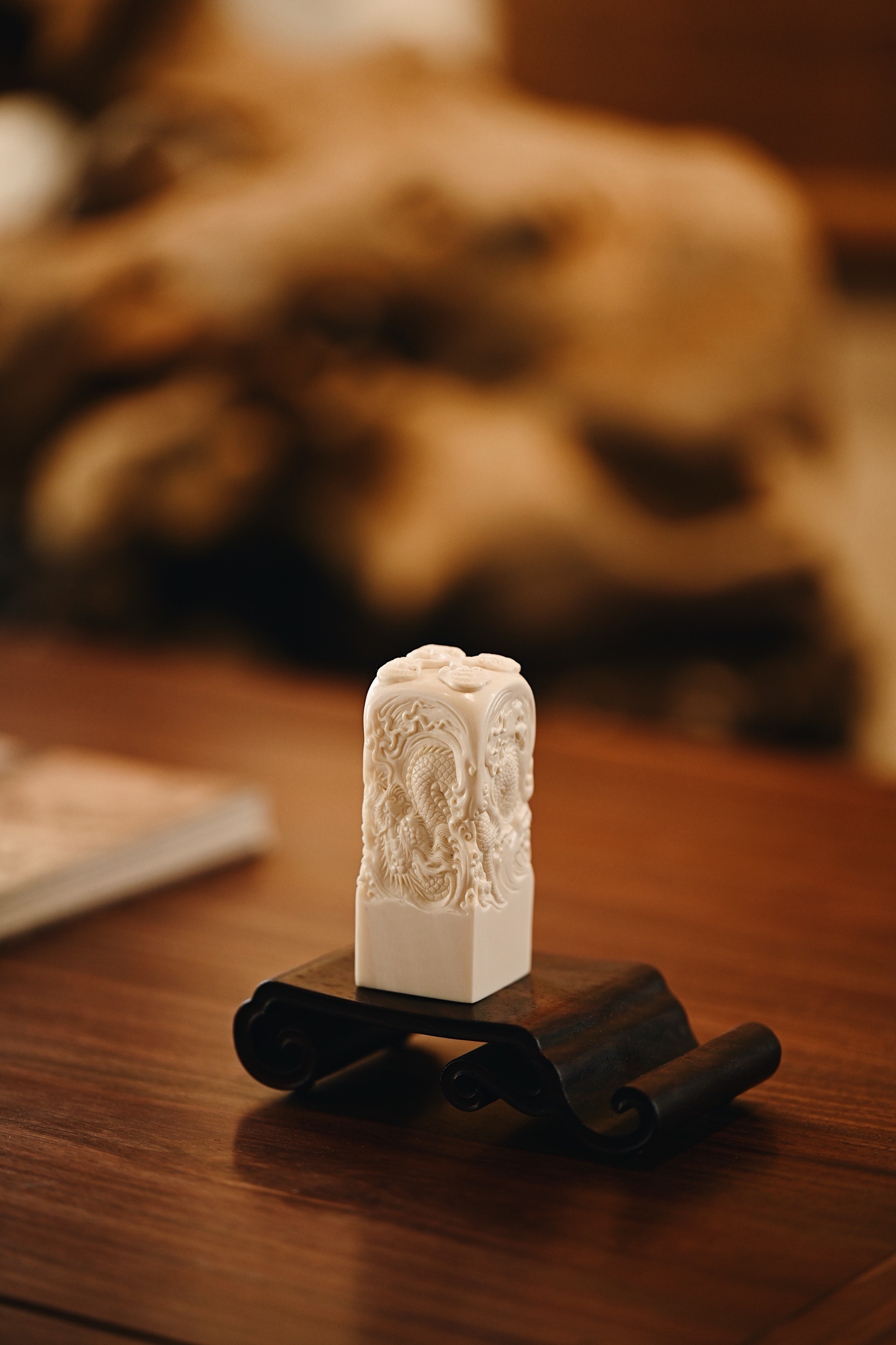 猛犸 | 云龙 印章雕刻通透干净,运刀贯连一气,飞龙身躯蜿蜒矫健,转折盘绕,指爪张扬有力,云海波涛汹涌,是不可多得的文房小物。3*3*7.2cm 96g