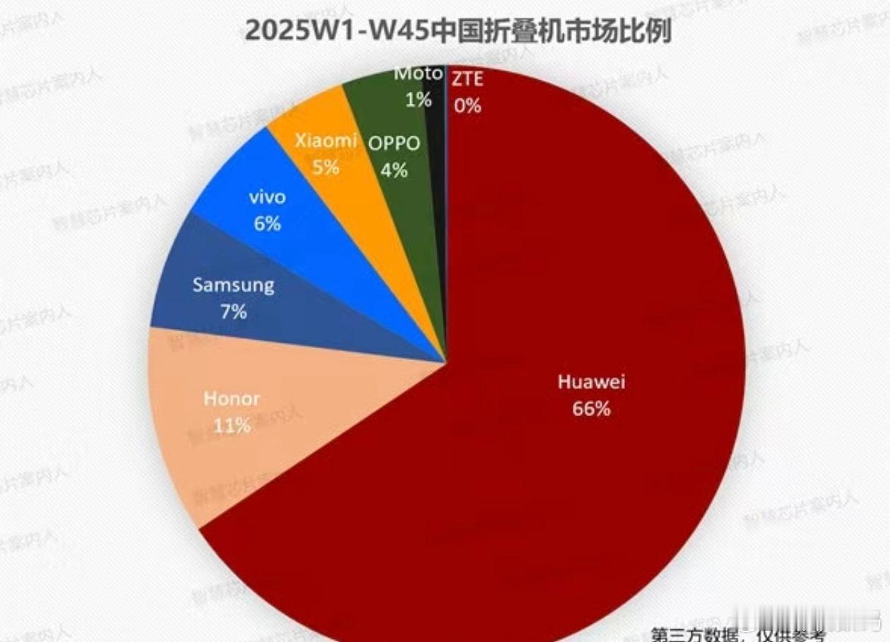 据爆料,2025年W1-W45中国折叠机市场比例饼图可以看到,荣耀以11%的份额在市场中占据了一席之地,大幅度领先了其他品牌,是当前折叠机市场里的主力品牌。