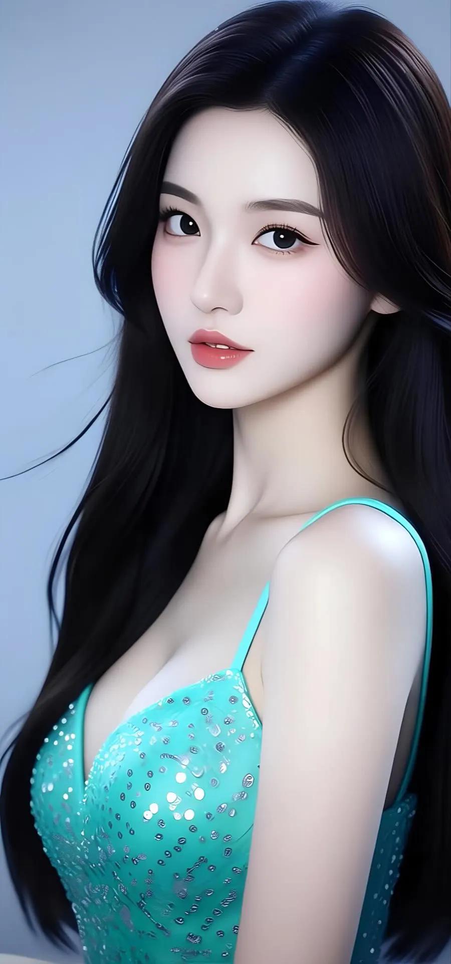 梦幻蓝裙少女,温柔似水,宛如画中仙子。