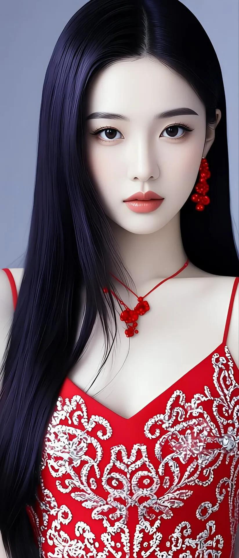 优雅黑发美人,闪耀珠宝项链,红唇白裙,气质非凡!