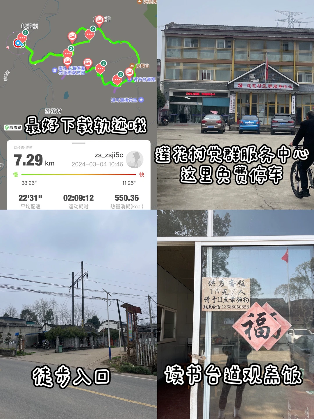 嗨,大家好,这里是爱户外徒步的耍不完 今天给大家推荐一条野趣十足的徒步路线👇🏻 ✅7㎞左右的小环线,途径➡️土路➡️碎石路➡️机耕道➡️公路和有特色的轮胎路! ✅初春还可以赏玉兰花、梅花🌸、果园、南天竹林 ✅还可以看到山坡上圈养的🐷,鸡🐔🦆等,带小朋友过来应该会很喜欢哦 ✅ 途径读书台道观(可以吃斋饭,需要预约)以及红军桥、龙华堰~ 🚘成都出发1小时的车程,距离很适中,当天来回~ 时间充裕的话,🉑以去一趟白塔湖或者竹艺村 ⛳️地址:直接导航崇州市莲花村党群服务中心 📝TIPS: 1.提前下好轨迹 「崇州莲花村环线」,有部分路段岔路口较多,容易走错 2.带好登山杖和水 3.读书台道观会有厕所🚾 4.自备垃圾袋,将所有垃圾打包带走🌿
