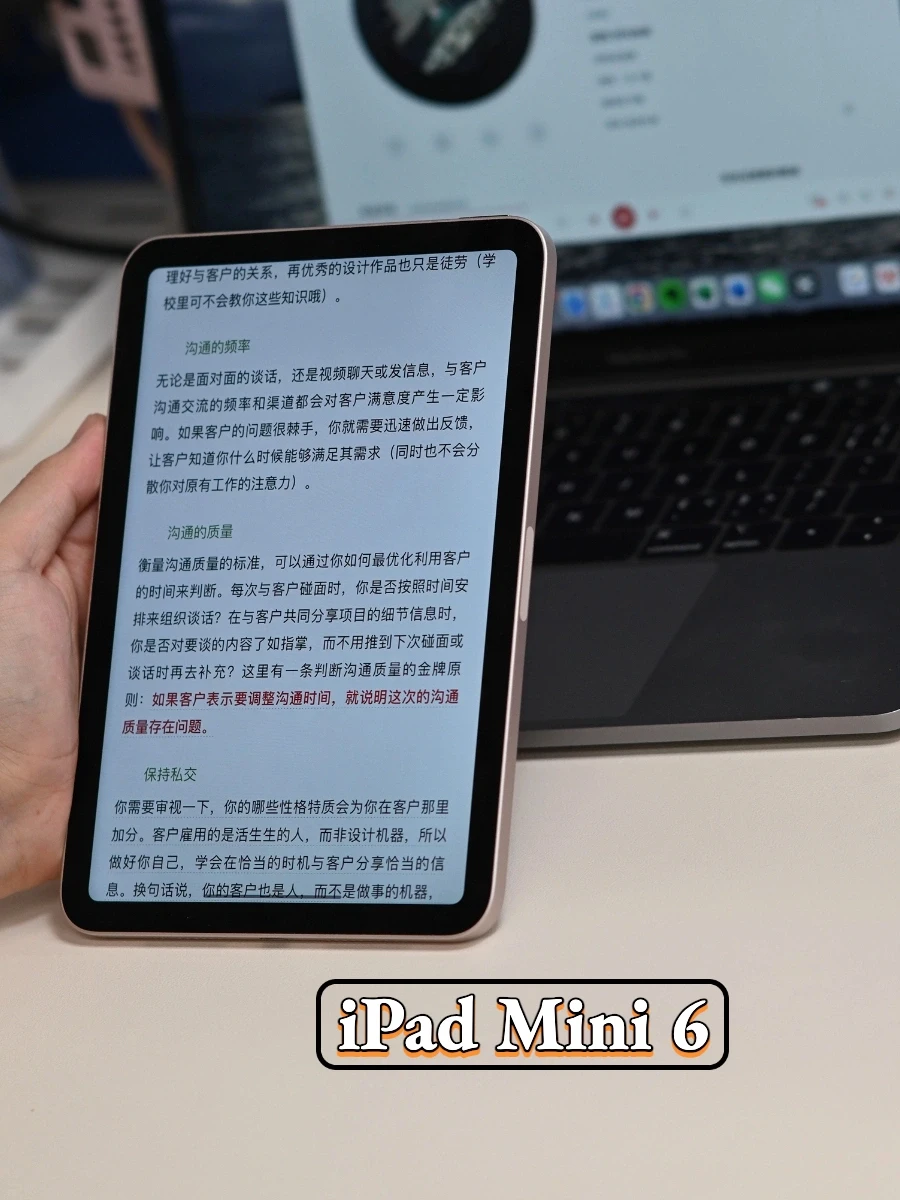 如果有了笔记本电脑不一定非要购买平板,看自己的需求是否需要。我自己买这台 Mini6 相比其他iPad机型来说小一点,单手持握也不重,因为经常拿着用才能发挥产品的最大价值,如果你已经有笔记本电脑了,需要一台平板上课手写记笔记或者有绘画需求可以考虑,没有笔记本电脑的话优先买笔记本电脑再考虑平板电脑。