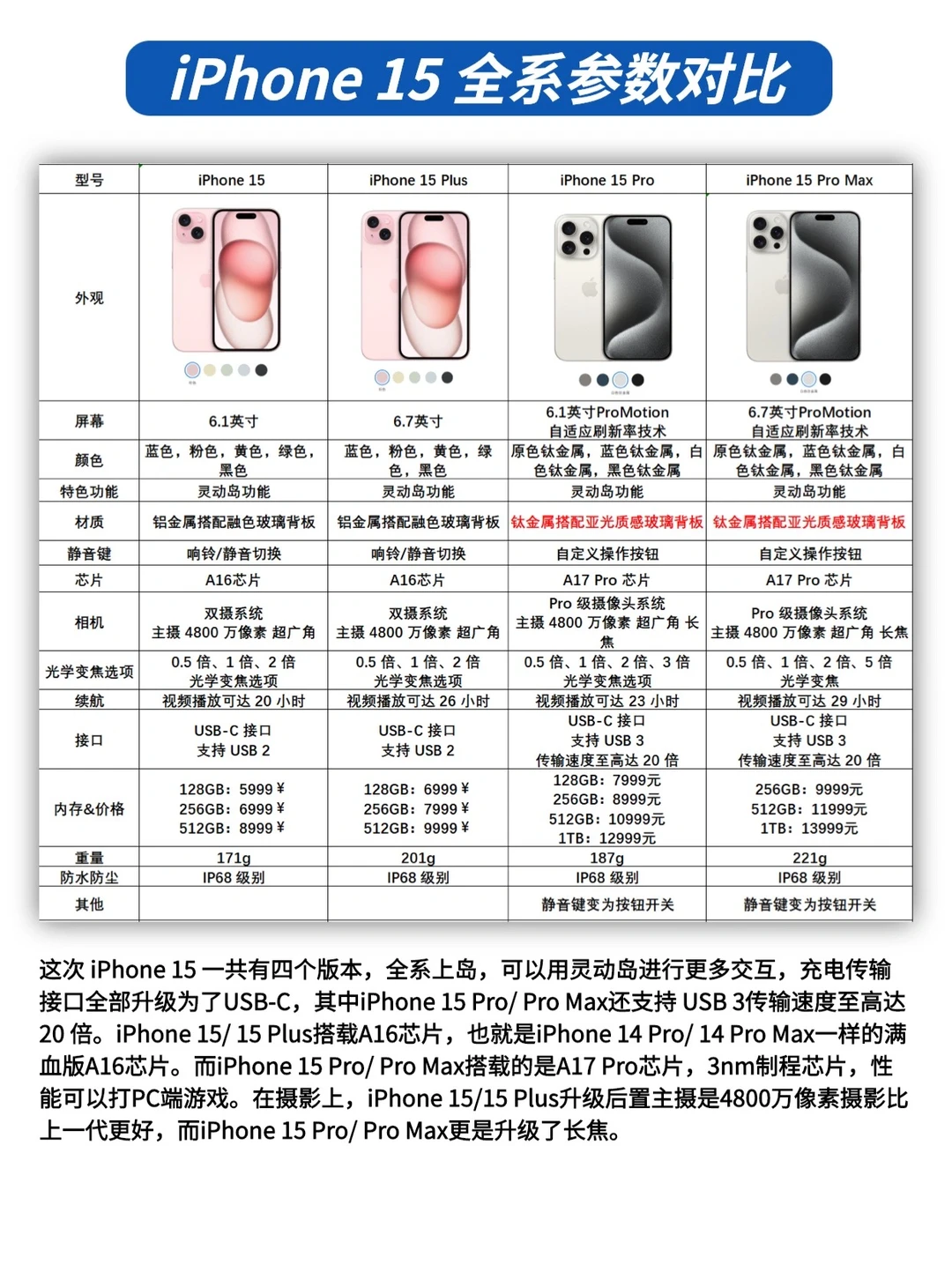 1⃣️iPhone 15 全系参数对比(图2)