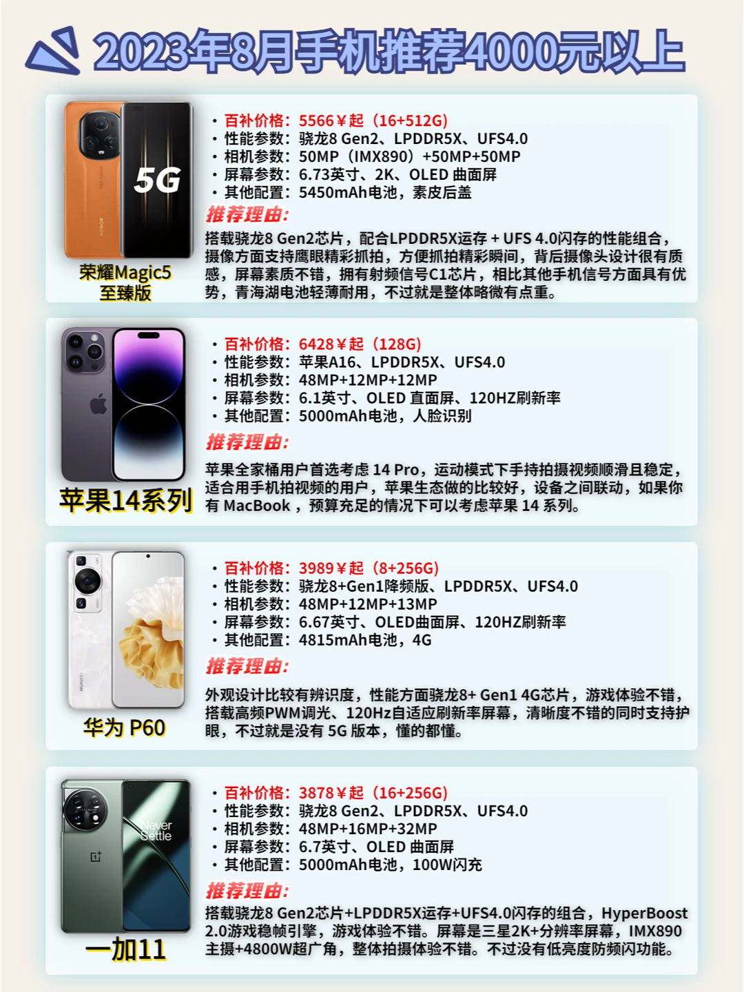 荣耀 Magic5 至臻版、苹果14系列、华为 P60、一加11