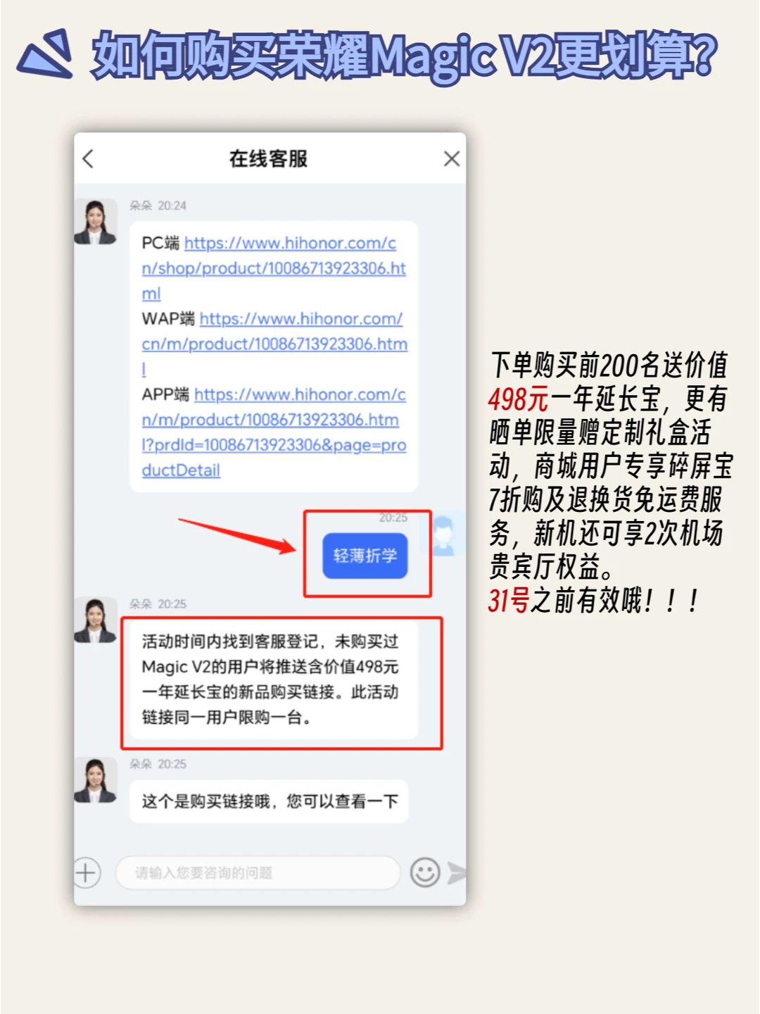 在荣耀商城中点击客服→选择人工客服→输入【轻薄折学】