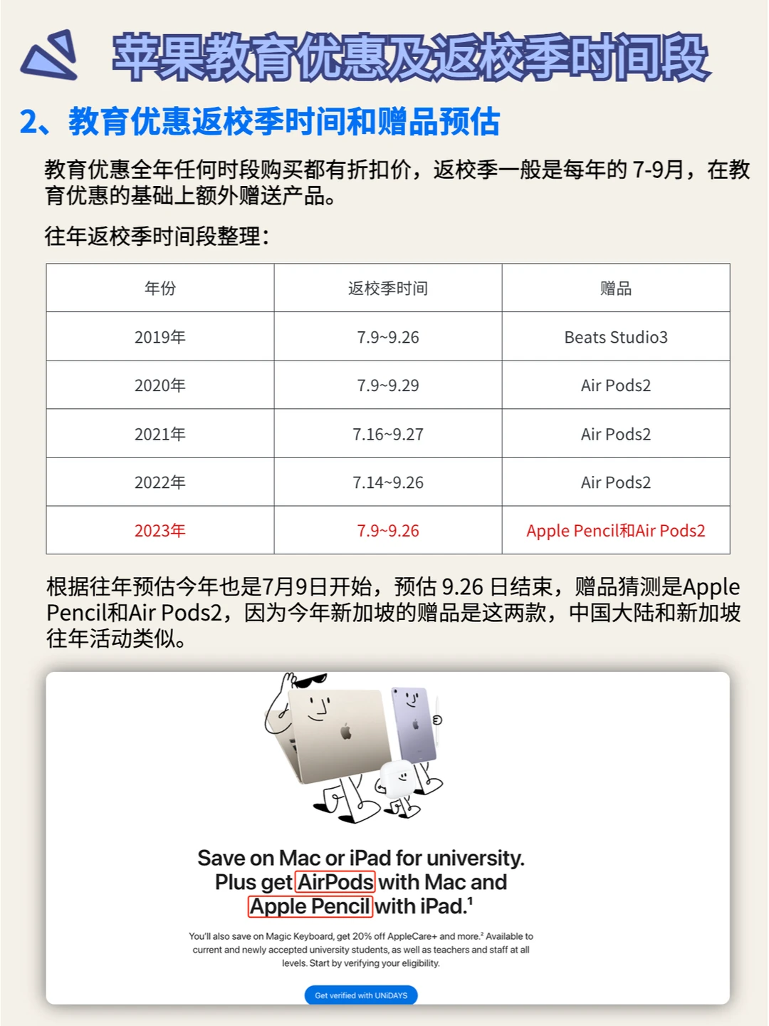 2⃣️教育优惠返校季时间和赠品预估。