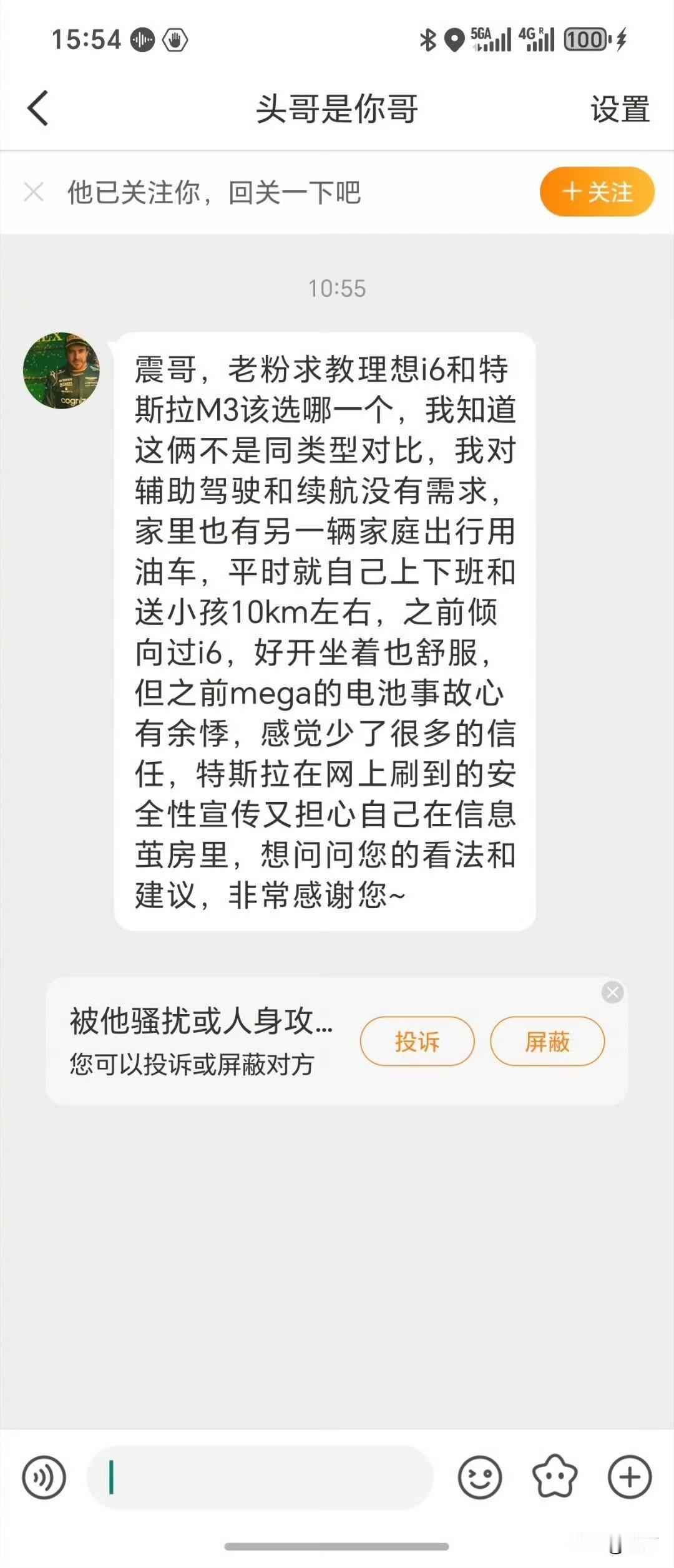 陈震被问:理想I6和特斯拉Model3怎么选?这次他的选择完全相反[捂脸] 因为这次这个用户的使用场景,与一般的用户不一样,他家里面还有一辆油车,再加上他的主要使用场景,就是用这个车送小孩上下学,再加上平时上下班用,也就开个十多公里。 在这种情况下,他是完全不依赖任何辅助驾驶系统的,也不追求所谓的彩电,冰箱大沙发,所以这次他问陈震的这两个车之间怎么选,陈震这次毫不犹豫地让他选择特斯拉。 当然啦,这个用户他从心里面还是偏向特斯拉的,不管怎么样,他还是说你前段时间理想出的那个事,以及自己的使用场景,所以这次陈震才毫不犹豫地给出相反的答案。