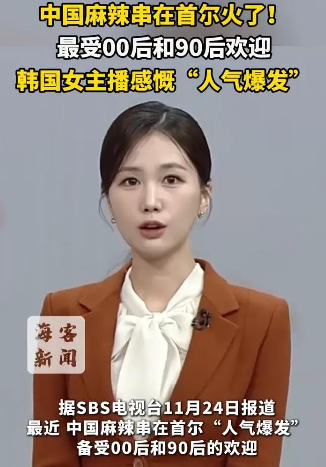 中国麻辣串在首尔“人气爆发”啦!据SBS电视台11月24日报道,它成了继糖葫芦后又一在韩火爆的中国小吃。今年6月首家麻辣串连锁店开业,靠社交媒体口口相传迅速扩张。除了中国留学生和游客,韩国上班族和20多岁的人也超爱。 早在2021年,洪七公吃串串韩国首尔店就登上央视财经频道。这家2019年6月开业的店,开业当天日营业额350万韩元就上了热搜。它有正宗成都麻辣味,武侠风装修和汉服文化也获当地食客认可。即便疫情冲击餐饮,它仍通过外卖等方式提升业绩,月销售额提高两成。不得不说,中国美食魅力无敌!