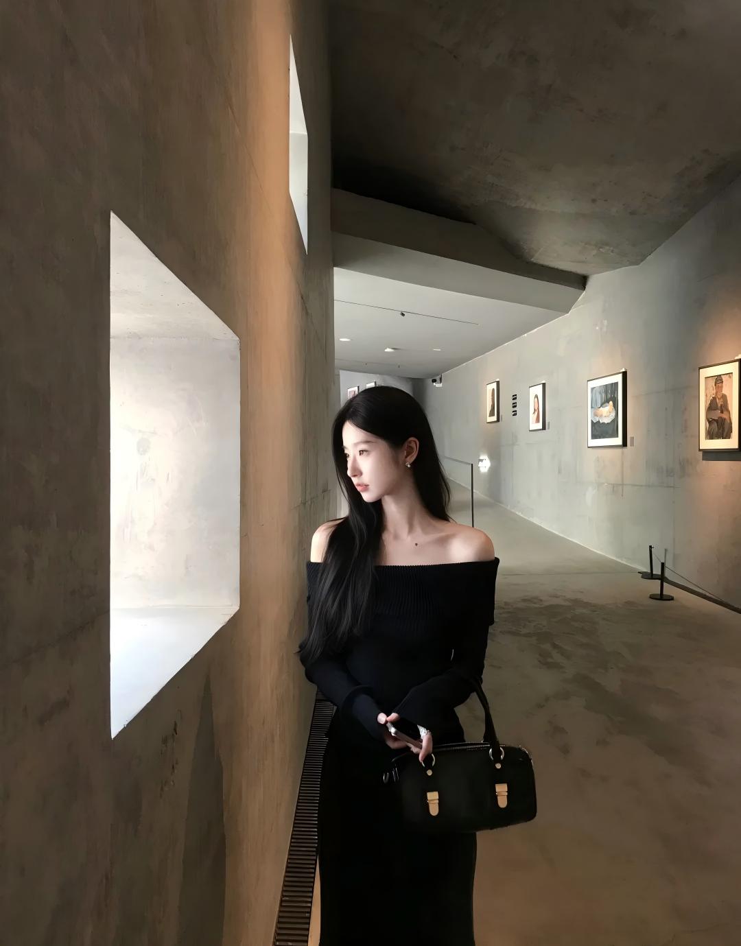 黑色优雅,艺术馆里的绝绝子穿搭🖤✨ 今天在艺术馆里,黑色一字肩长裙搭配简约手提包,简直是高级感爆棚!👗👜 黑色,永远的经典,无论是在任何场合都能轻松驾驭。今天的穿搭,简约而不简单,优雅中透露着一丝神秘。🖤 一字肩设计,不仅展现了女性的柔美,还增添了几分性感。搭配黑色手提包,整体造型更加和谐统一。👠 在艺术馆的灯光下,黑色长裙与画作相映成趣,仿佛自己也成了一件艺术品。🎨 这样的穿搭,不仅适合艺术馆,也非常适合各种正式场合。黑色,让你在任何时候都能成为焦点。🌟