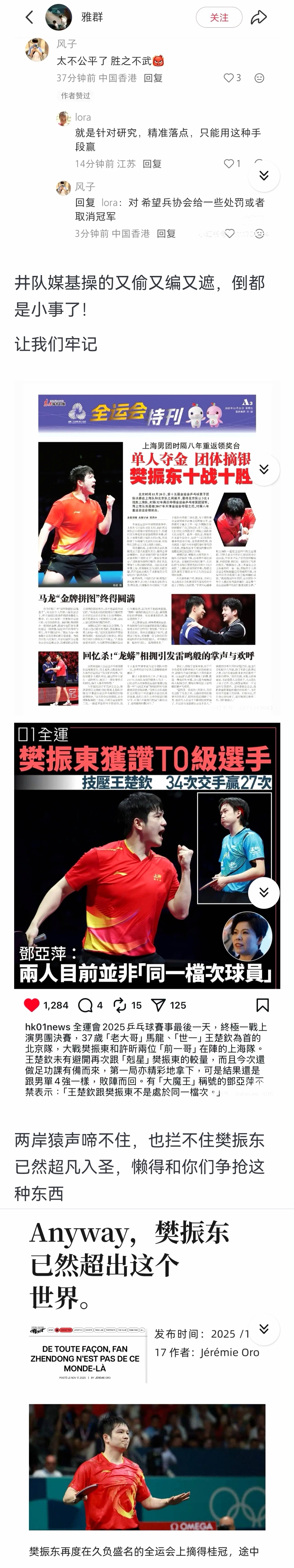 日媒报道樊振东、王曼昱蝉联全运会单打冠军。全国先进工作者,国家的眼光不会错。 ❖