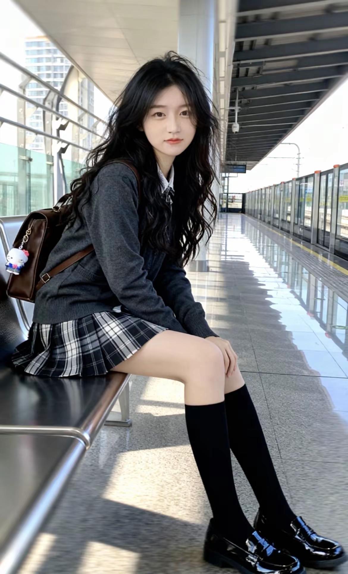 谁穿都好看系列。分享 jk穿搭 学院风穿搭 地铁拍照