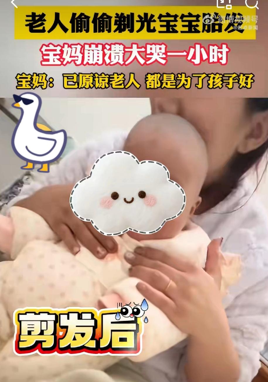 奶奶偷偷剃光孩子的胎发 母亲崩溃大哭一小时 奶奶认为孩子的胎发需要剃掉最好 因为老人的观念认为孩子不剃胎发就会容易生病 之前宝妈一直不同意,觉得孩子头发挺好的,剃掉的话,怕伤到孩子的毛囊 奶奶就偷偷的把孩子的胎发剃掉了 后续孩子的妈妈也原谅了奶奶 毕竟出发点都是为了孩子好 只是育儿观念不一样 我觉得剃之前还是要让孩子妈妈知道的好 商量着来,不能偷偷的