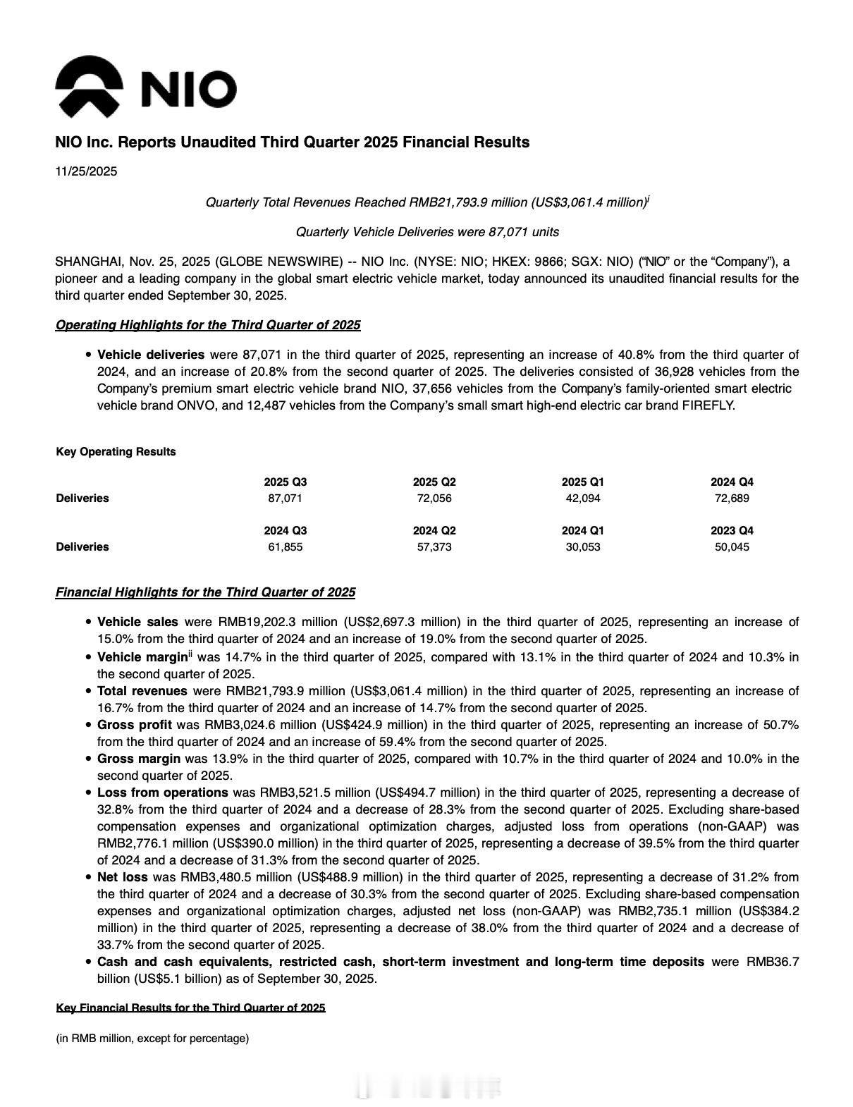 蔚来的 Q3 财报电话会正在进行,李斌说有信心实现四季度盈利的目标。「10 月中旬置换补贴退坡对市场的影响还是比较大的,今年可能不会像往年一样年末可以冲量,置换的补贴不像购置税的补贴一样有人兜底,所以需求会受影响,尤其是对价格较低的乐道车型有较大影响。」「之所以还有盈利的信心,是因为像全新 ES8 这样的高毛利车型累积了大量订单,所以虽然乐道的订单会减少,但毛利的总额不会受太大影响。」「三季度已经实现了整车 14.7% 的毛利率,四季度的整车毛利率能实现 18%,ES8 的交付在四季度会有跃升,单看 ES8 的毛利率会有 20% 以上,Q4 的毛利总额比起 Q3 要大幅提升。 」